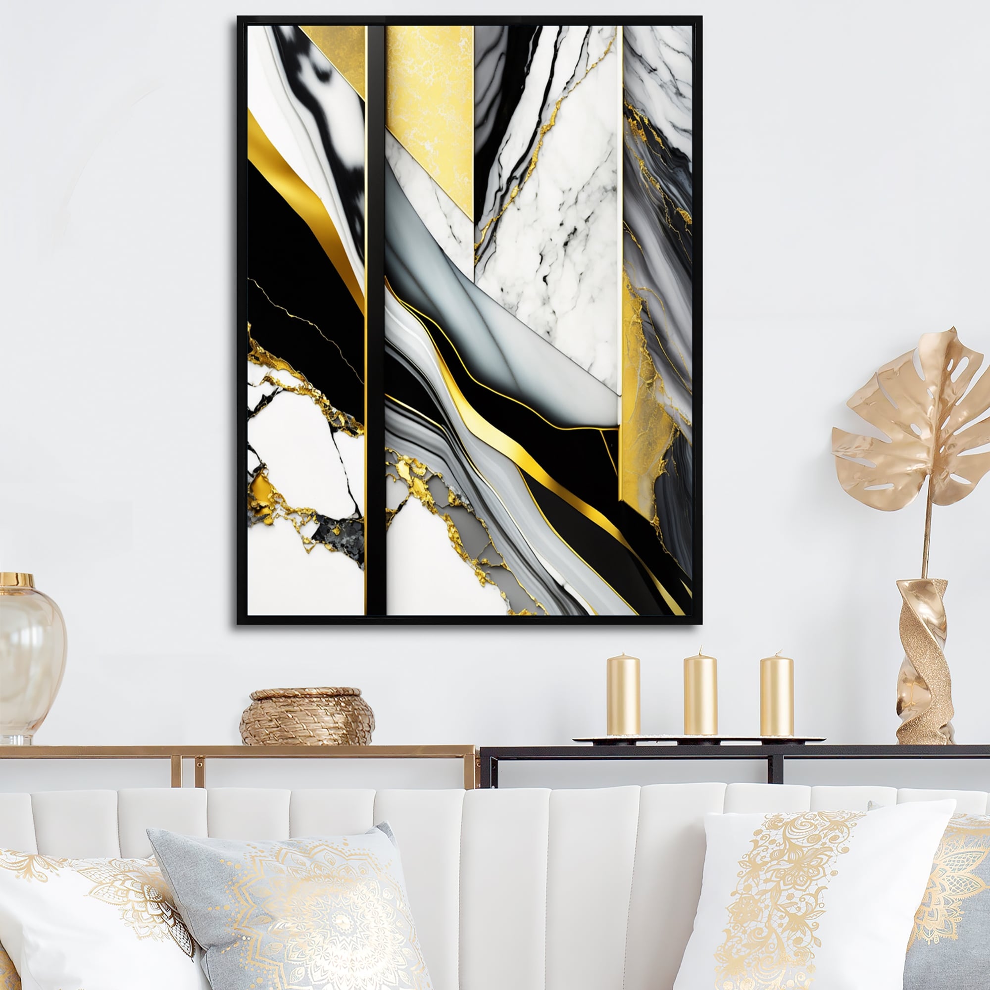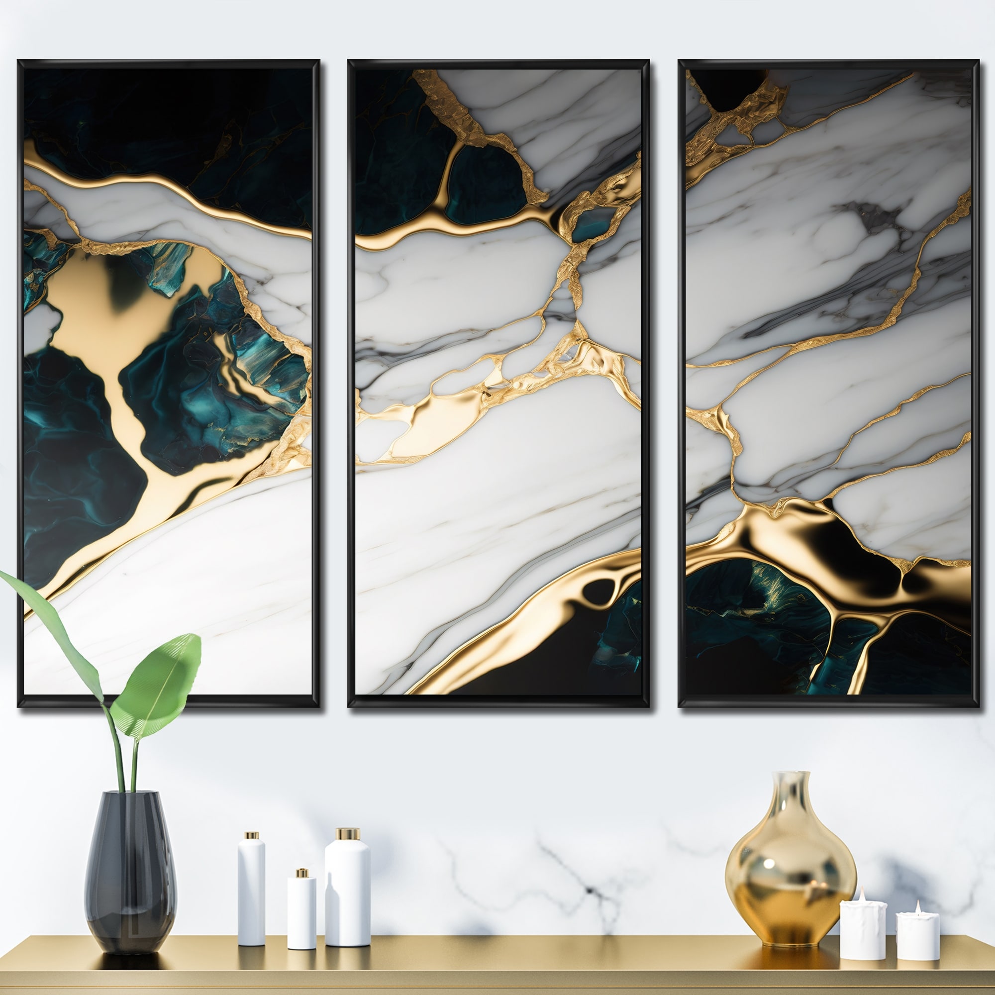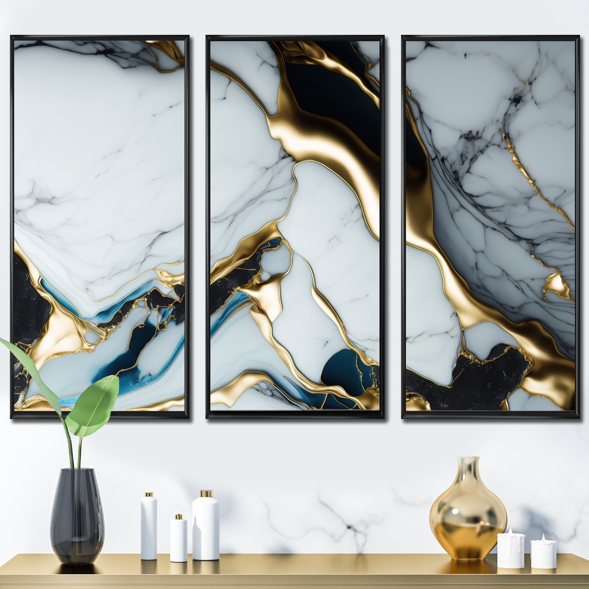 Designart "Abstract Geode Gold And White Marble II" Abstract Marble Framed Canvas Art Print - 3 Panels