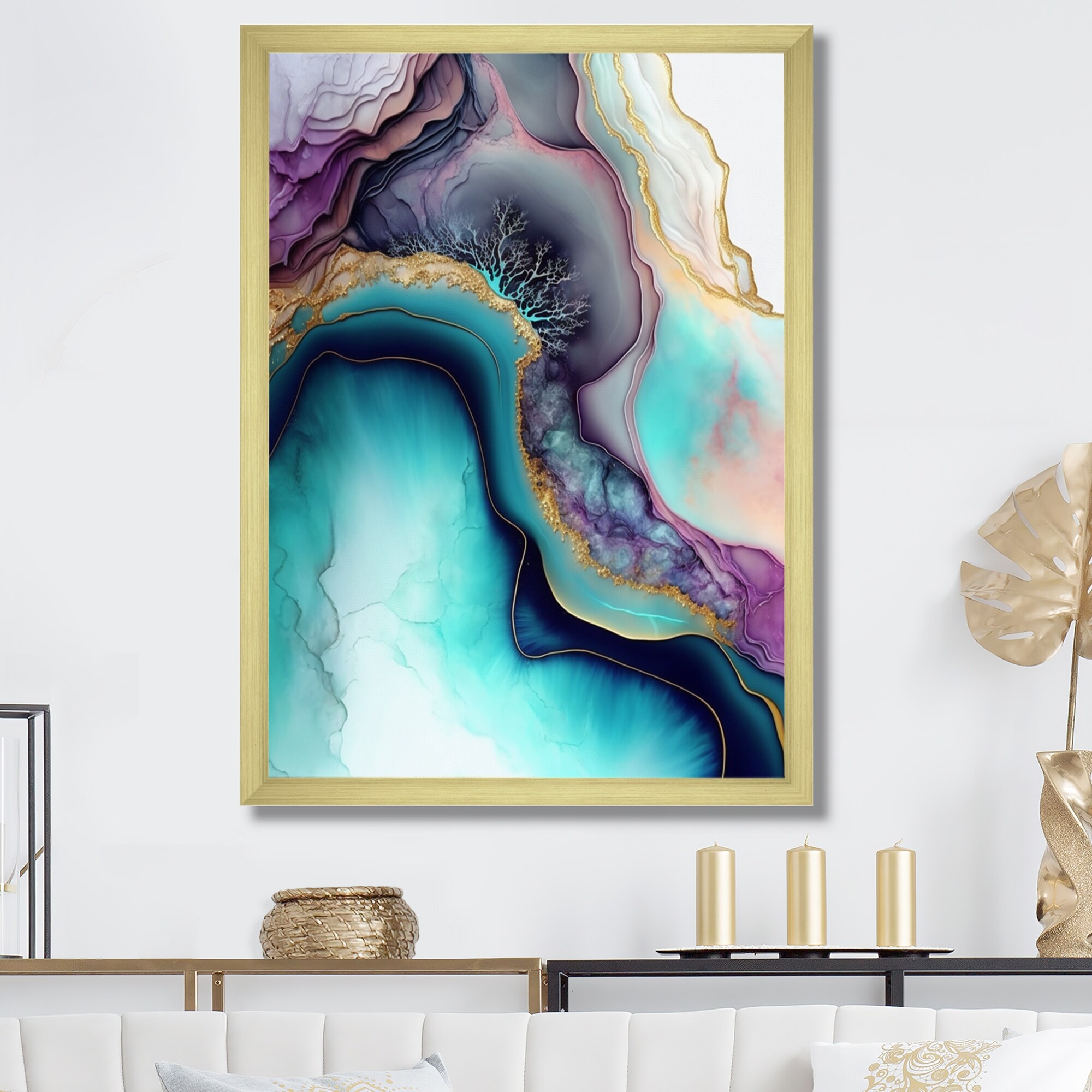 Designart "Blue Purple Abstract Geode Iii" Abstract Marble Framed Canvas Print