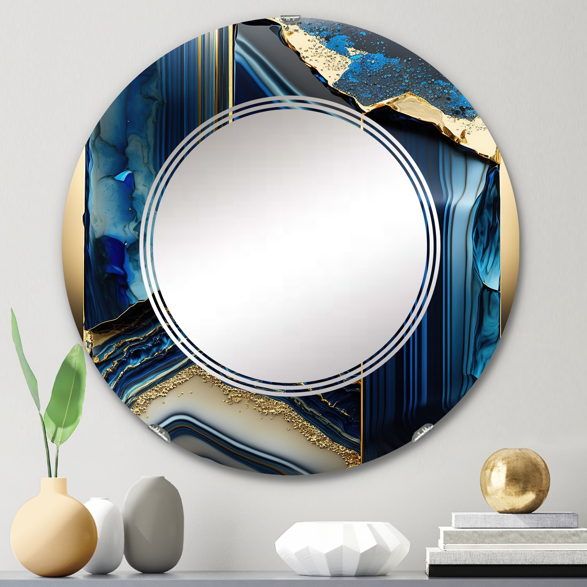Porch & Den 'Marbled Geode 8' Printed Modern WallMirror - Blue