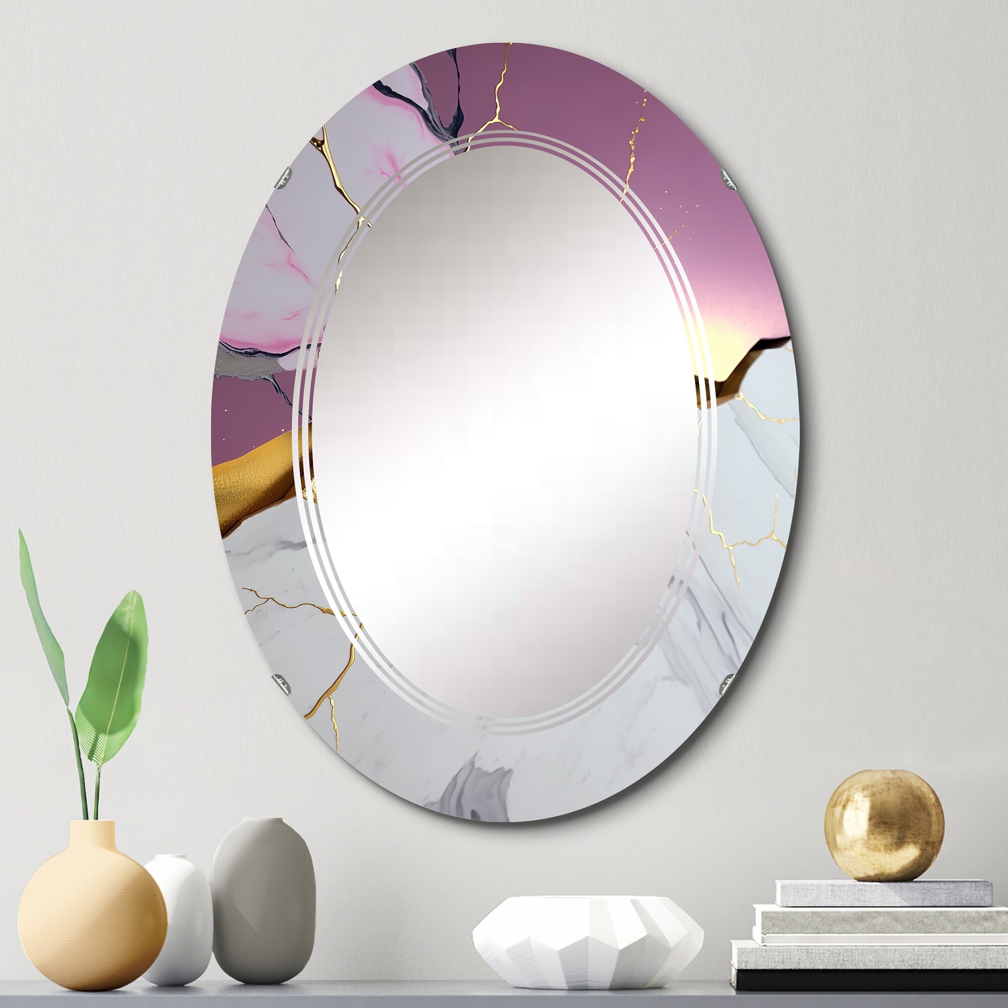 Designart 'Abstract Geode Pink III' Printed Abstract Marble Wall Mirror