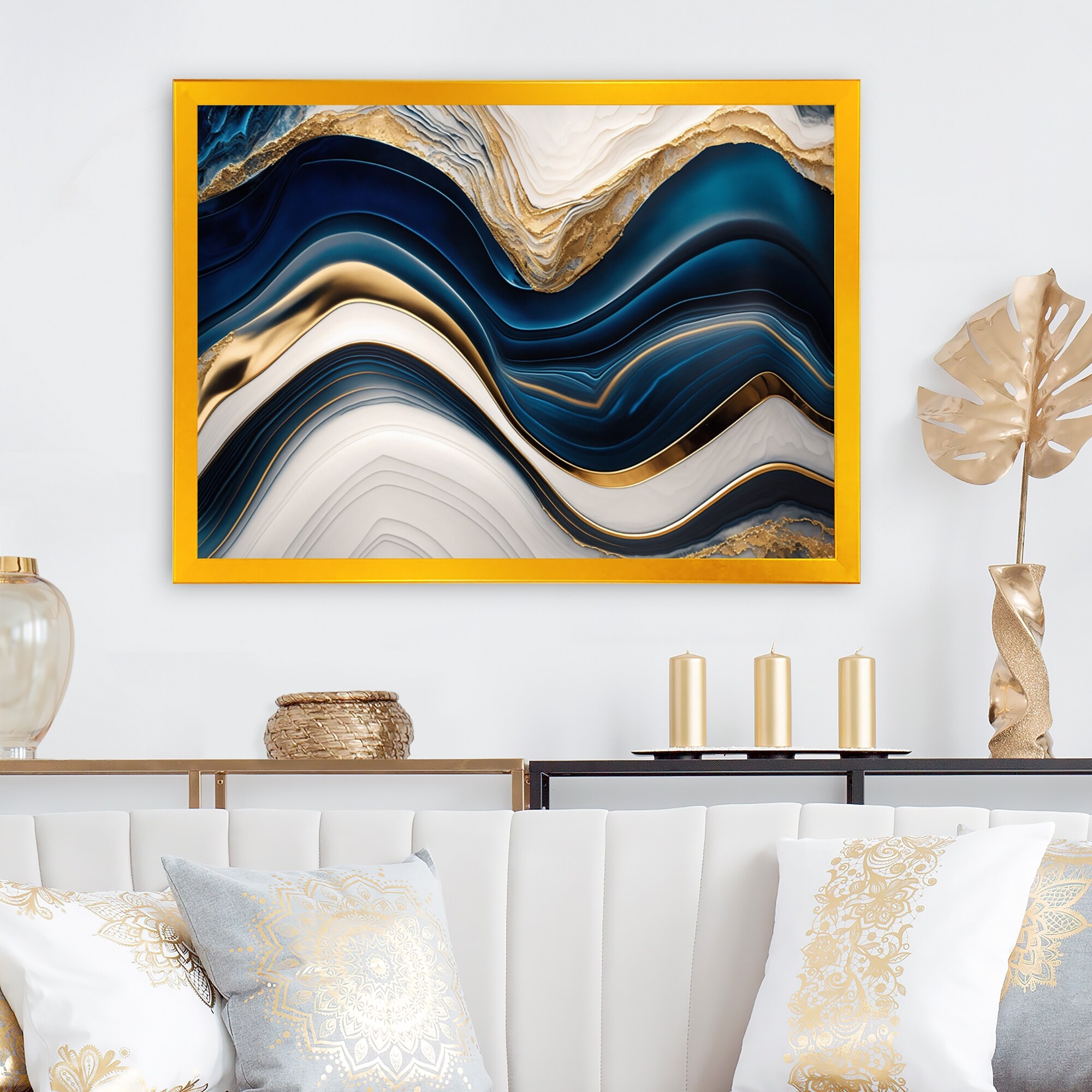 Designart "Abstract Geode Waves Blue III" Abstract Framed Art Print