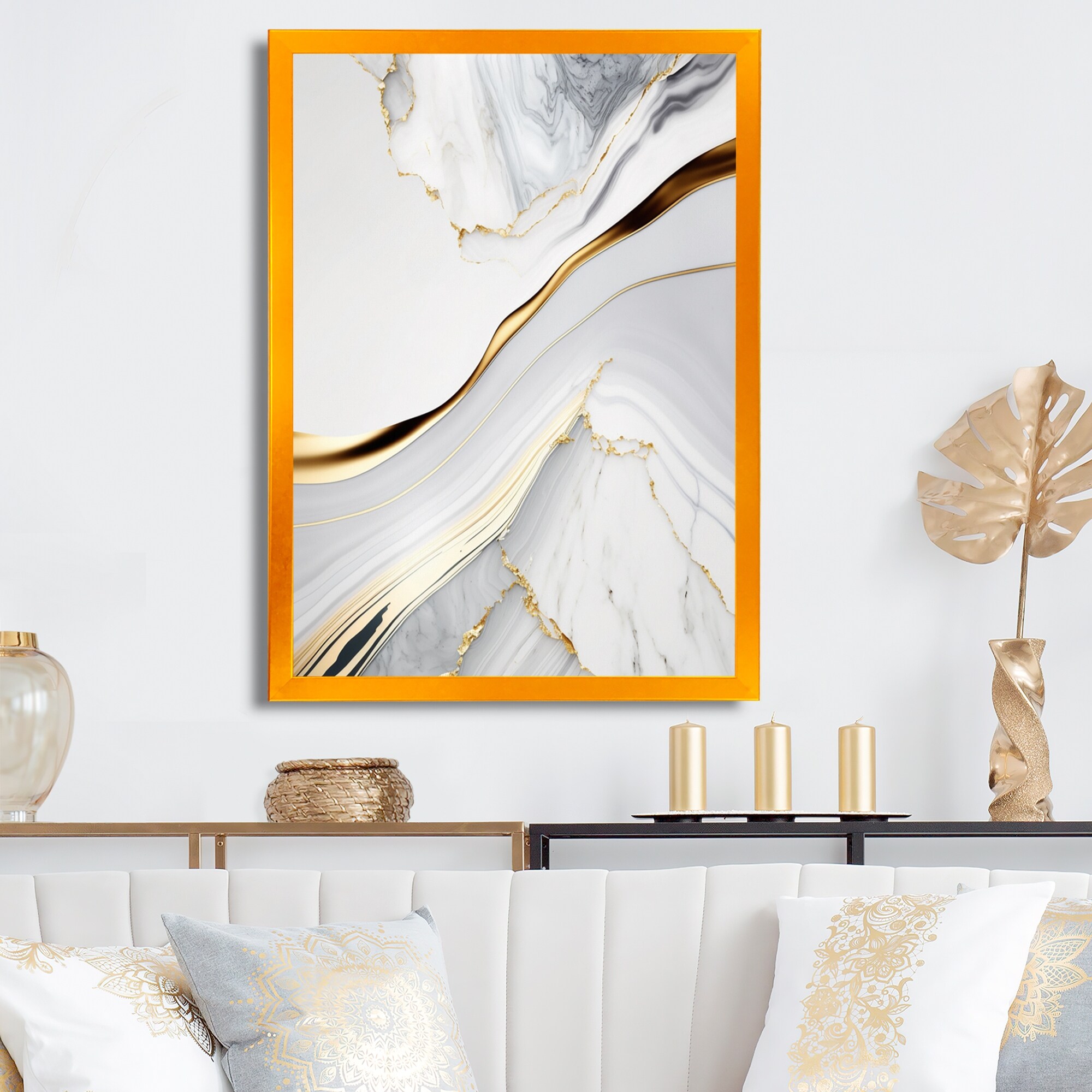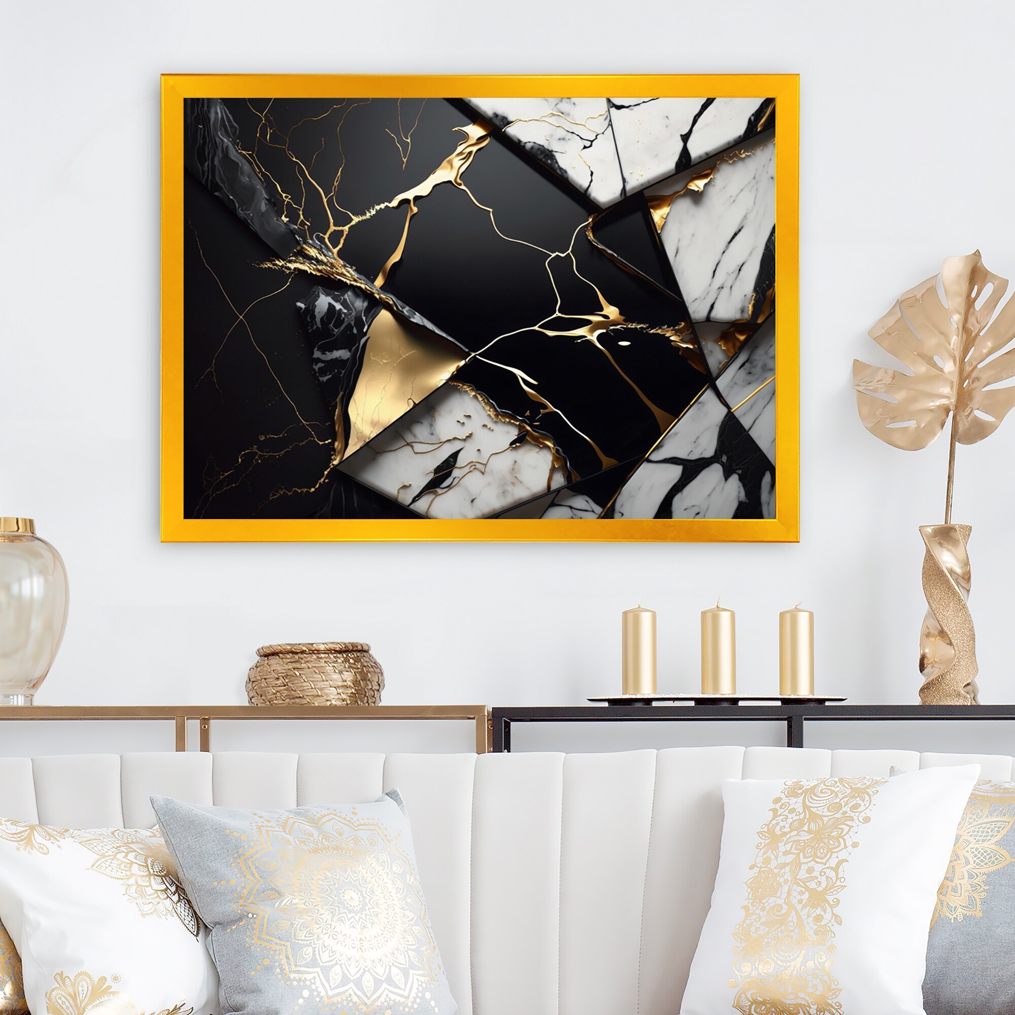 Designart "Abstract Geode Gold Marble II" Marble Abstract Framed Art Print