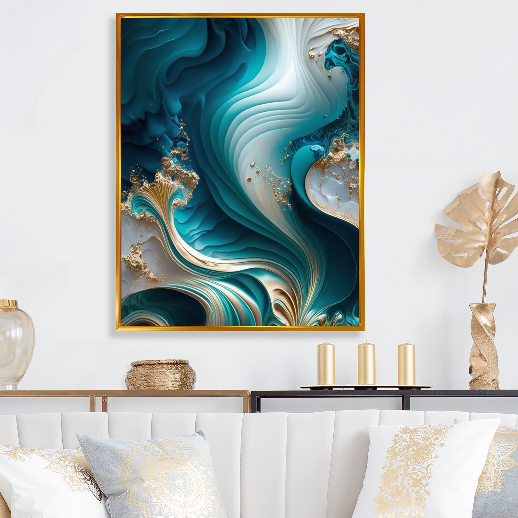 Designart "Abstract Geode Turquoise III" Marble Abstract Framed Canvas Art Print