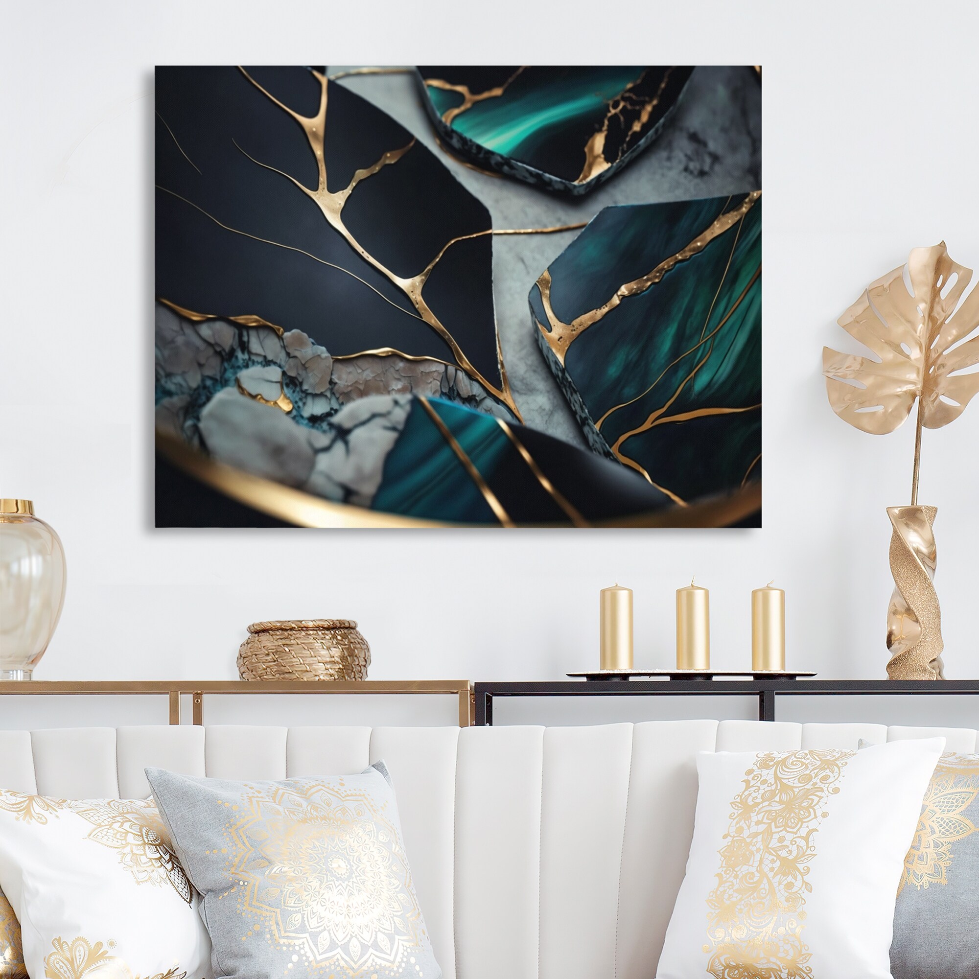Designart "Abstract Geode Gold And Green Marble I" Abstract Marble Framed Canvas Art Print - 3 Panels