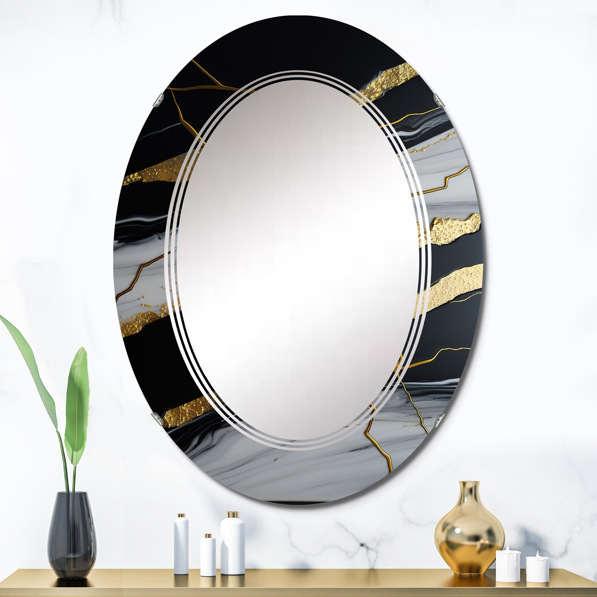 Designart 'Abstract Geode Black II' Printed Abstract Marble Wall Mirror