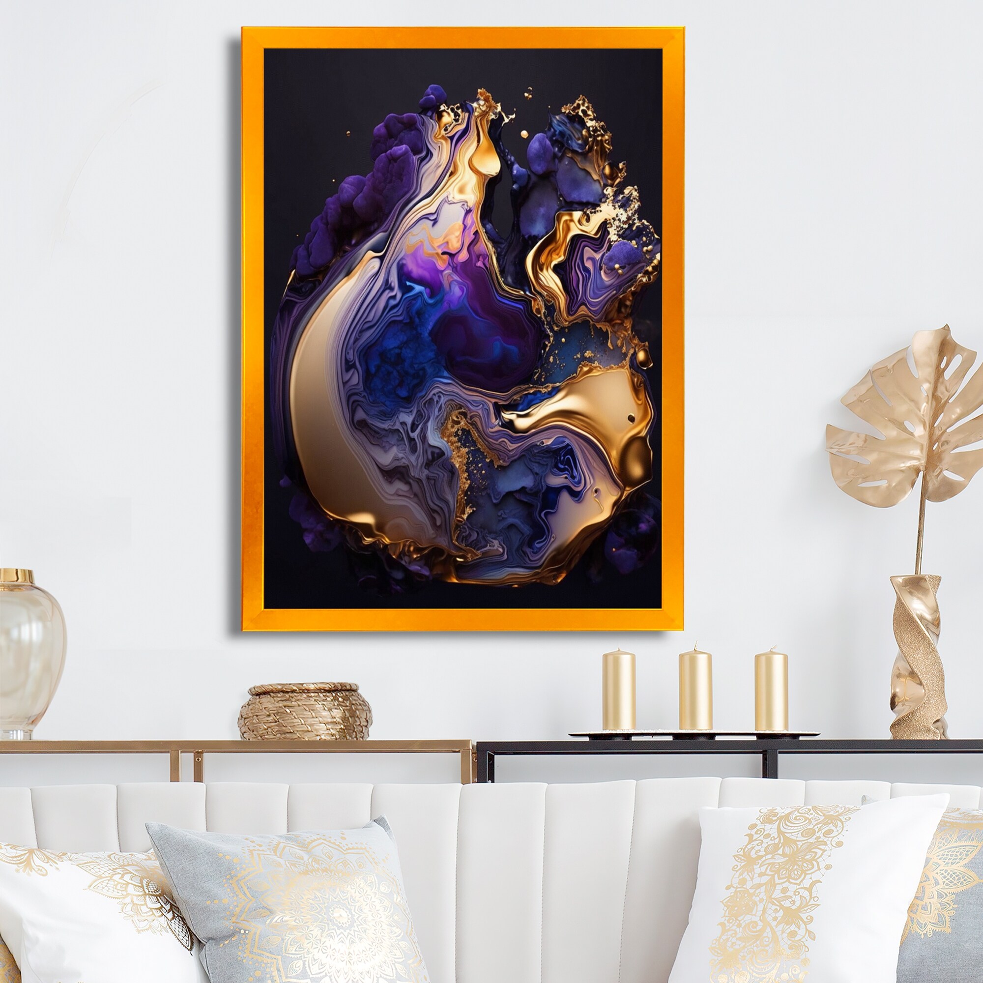 Designart "Abstract Marble Geode Purple II" Liquid ink Framed Art Print