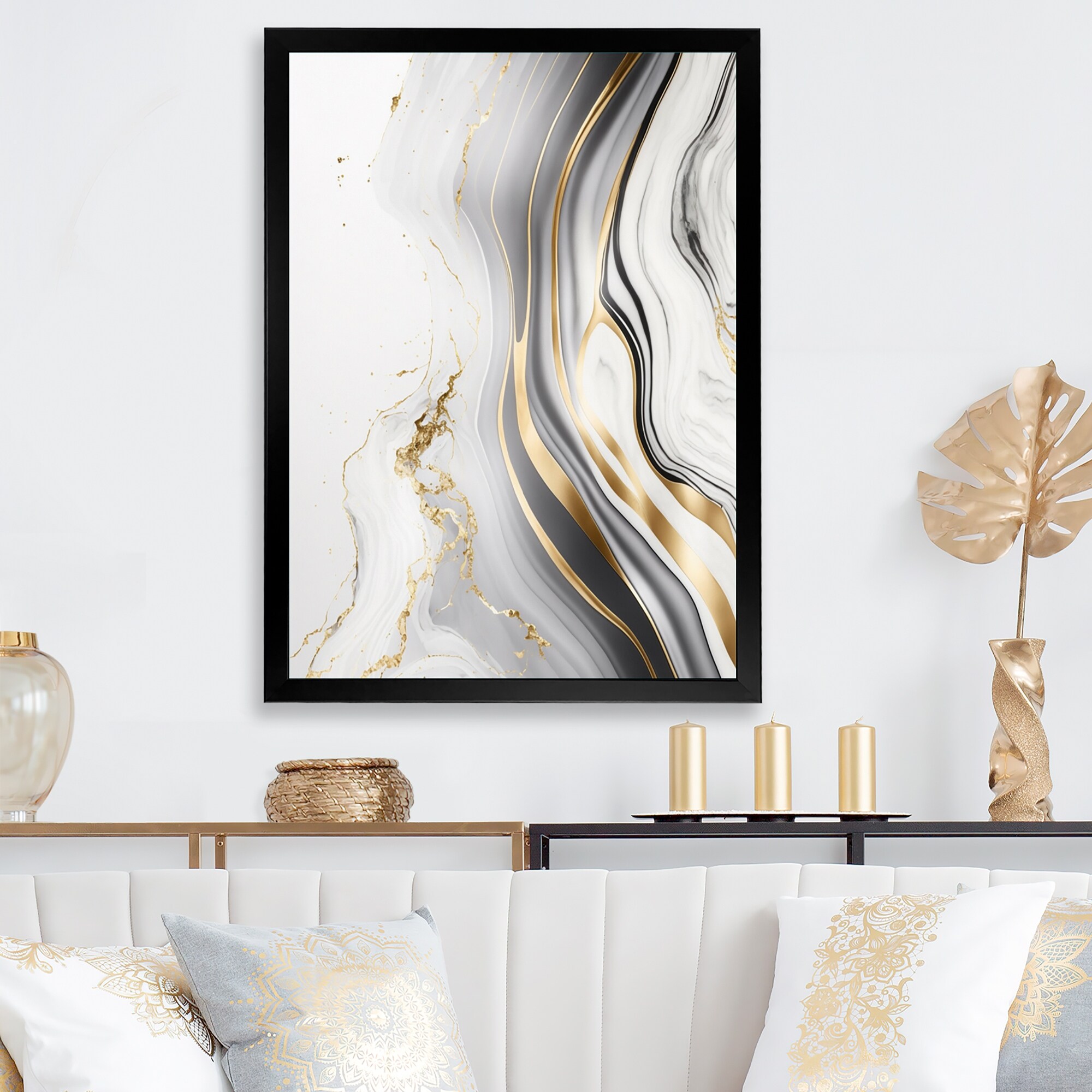 Designart "Abstract Geode Marble Waves Grey III" Abstract Framed Art Print