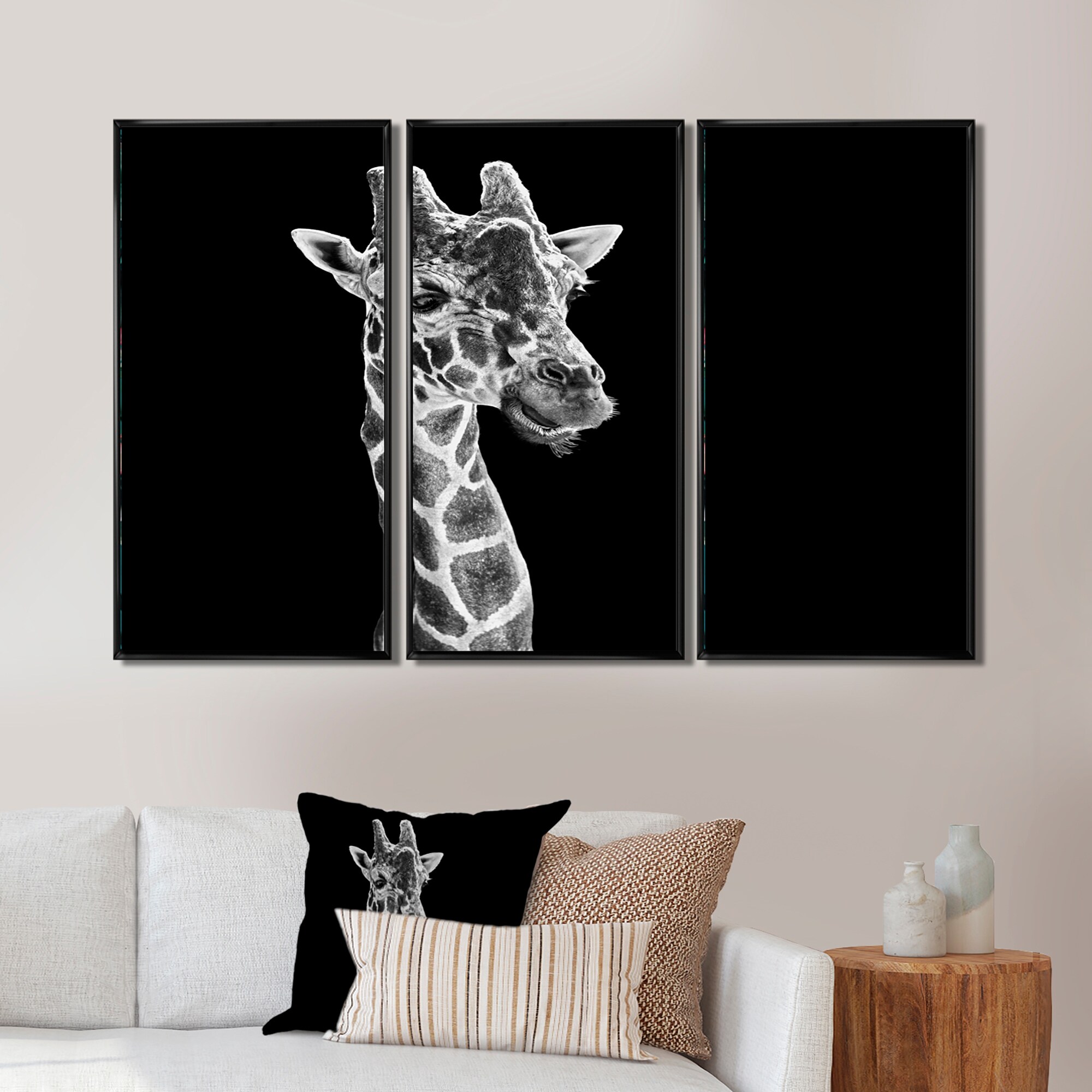 Designart "Portrait of a Giraffe VII" Farmhouse Framed Wall Art Set of 3 - 4 Colors of Frames