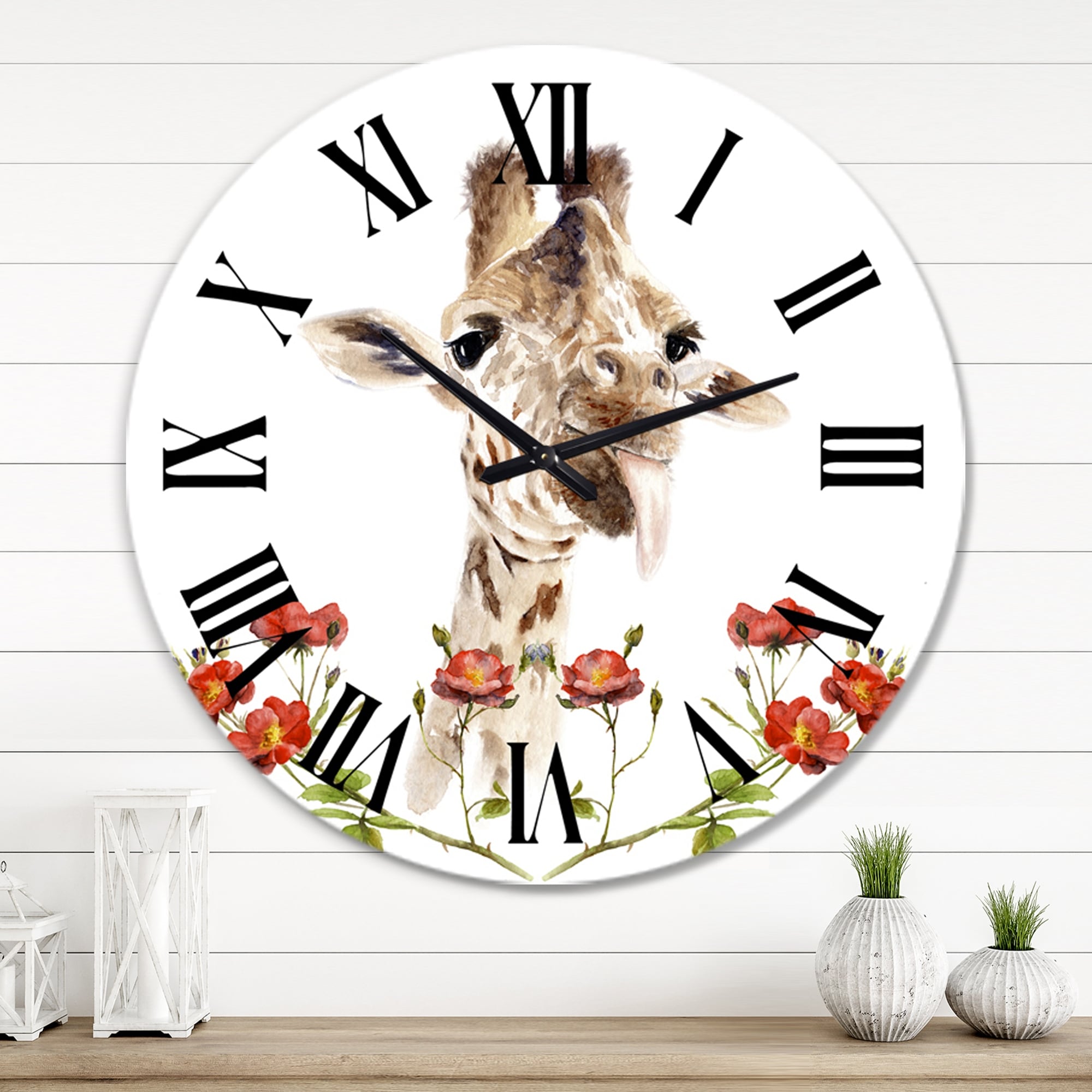 Designart 'Portrait of a Giraffe With Flowers II' Farmhouse wall clock