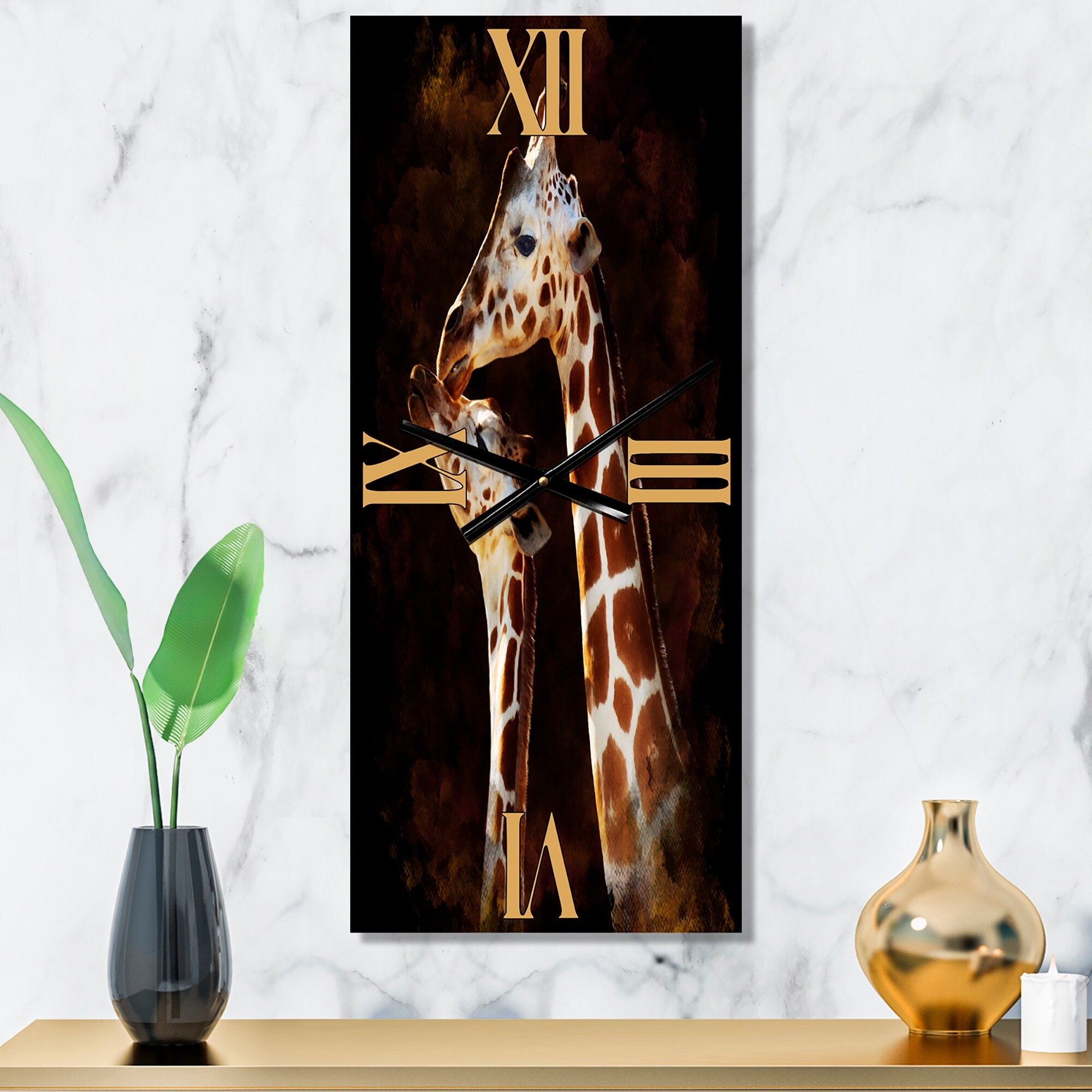 Designart 'Portrait Of Two Giraffes Kissing I' Farmhouse Large Wall Clock