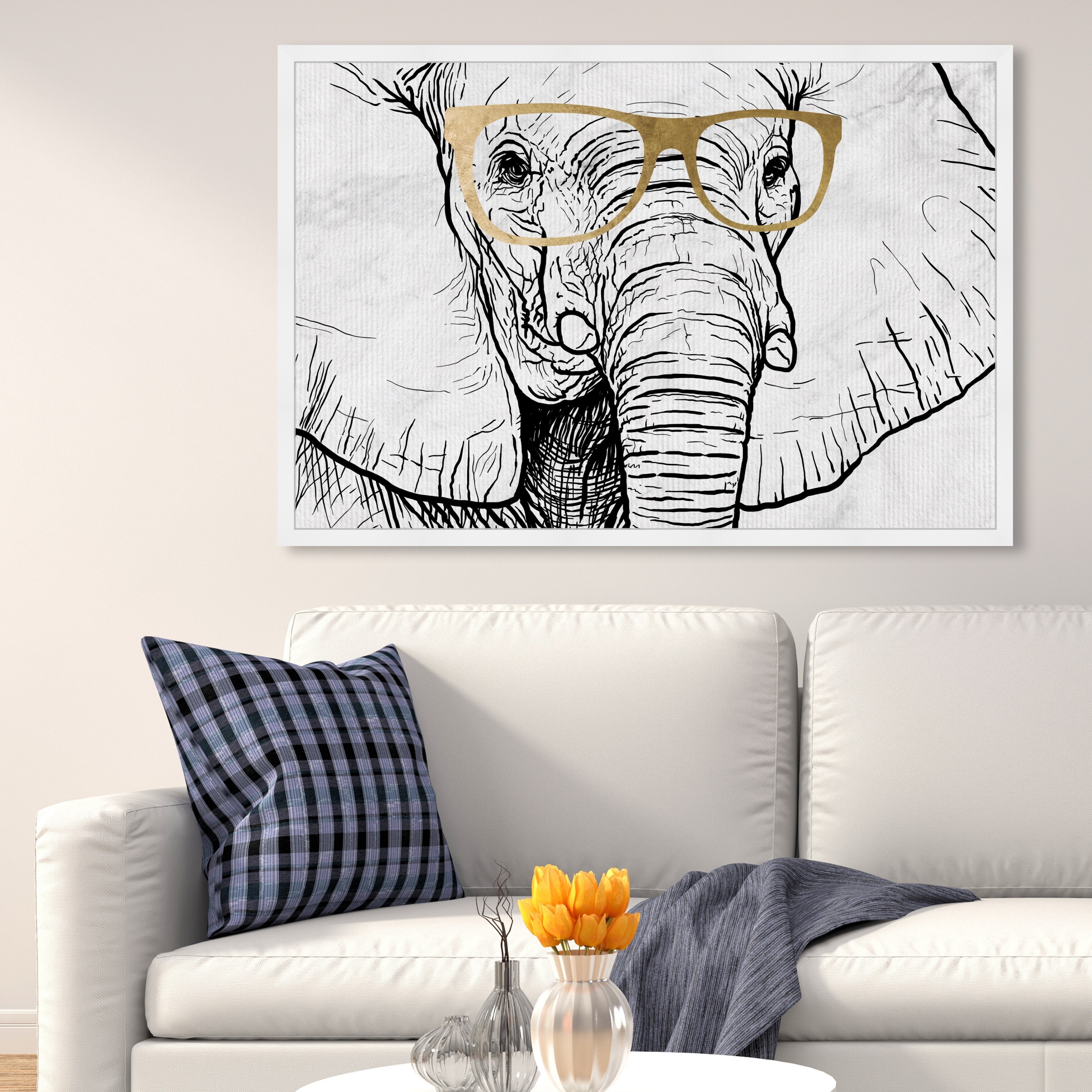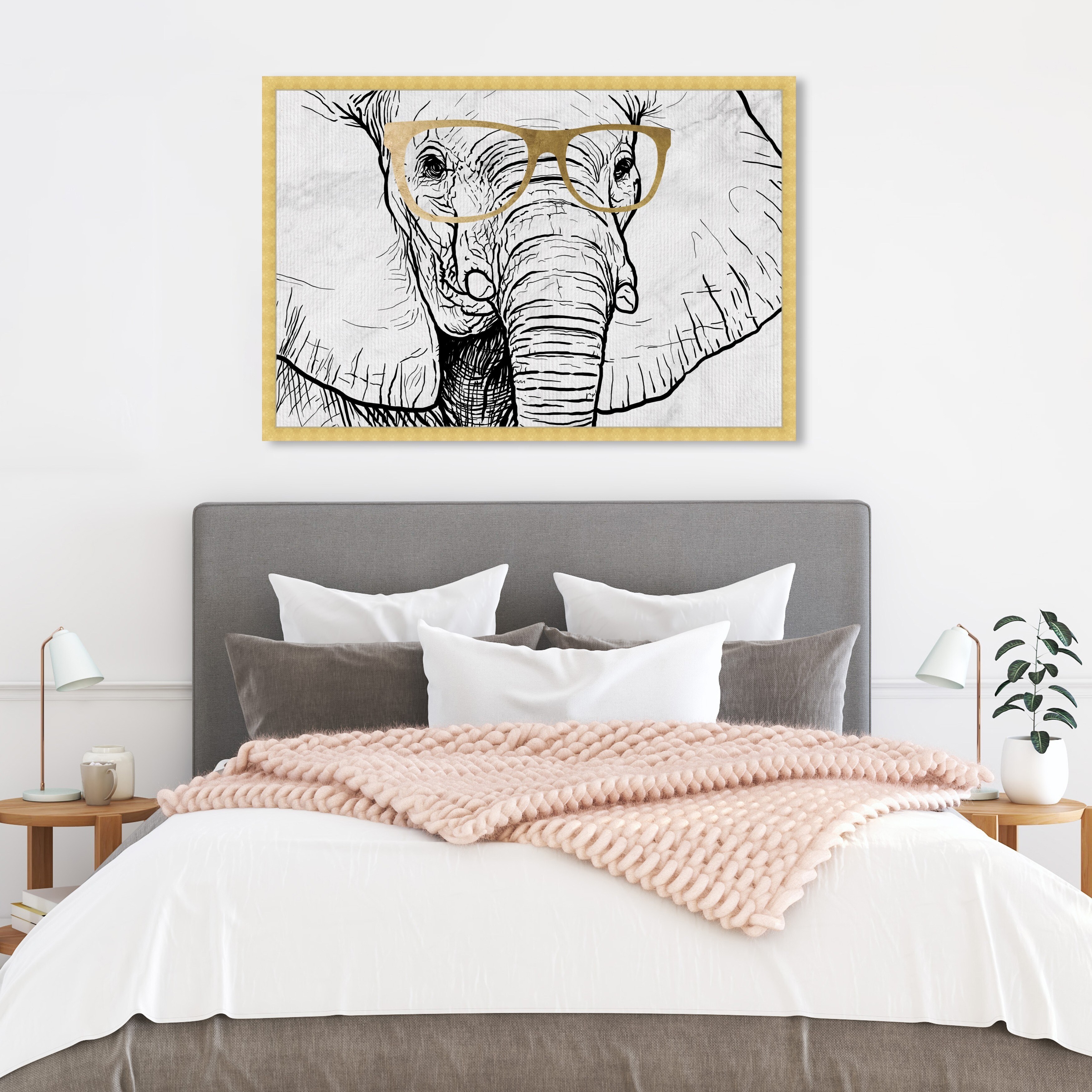 Oliver Gal 'Elephant and Gold Glasses' Animals Wall Art Framed Print Zoo and Wild Animals - White, Gold