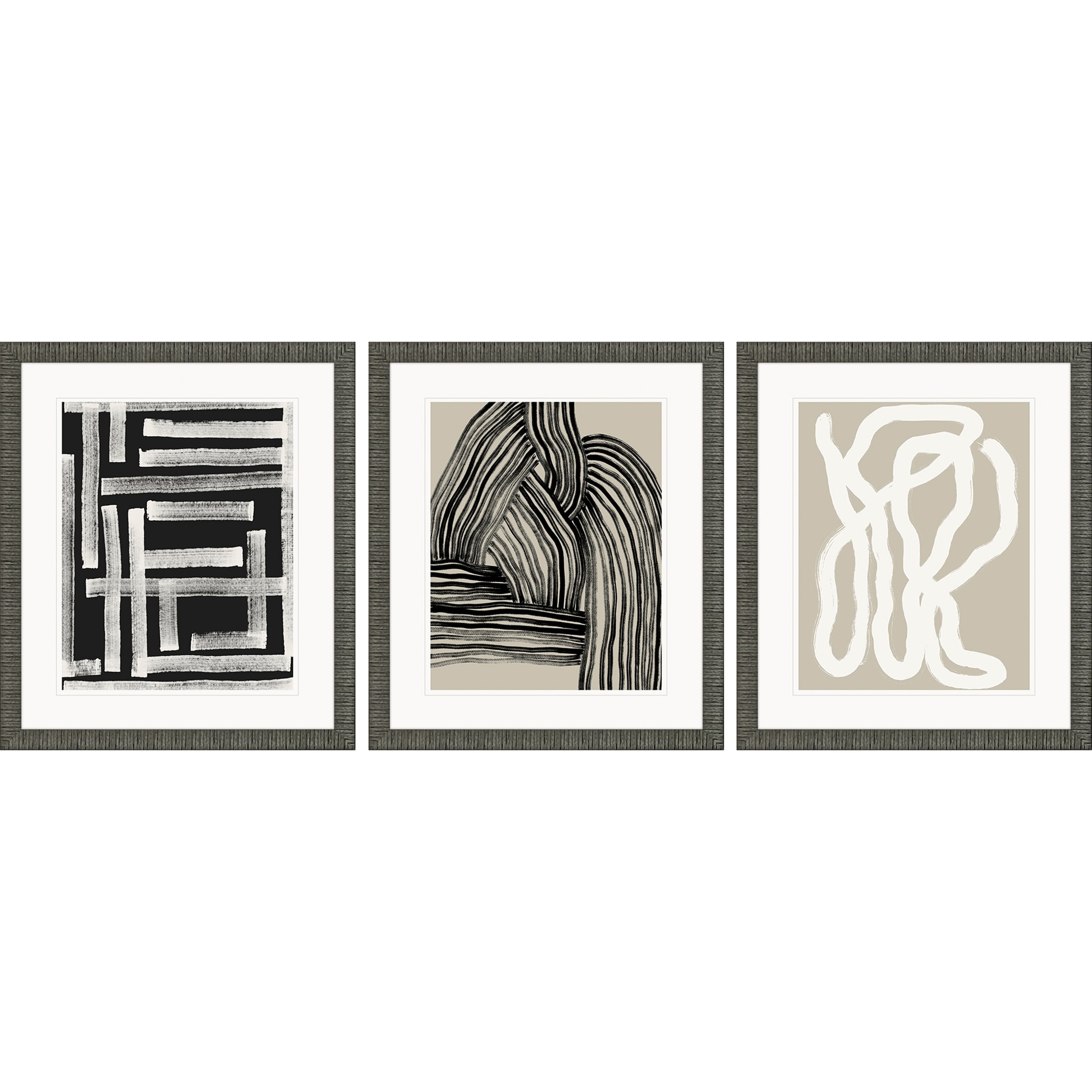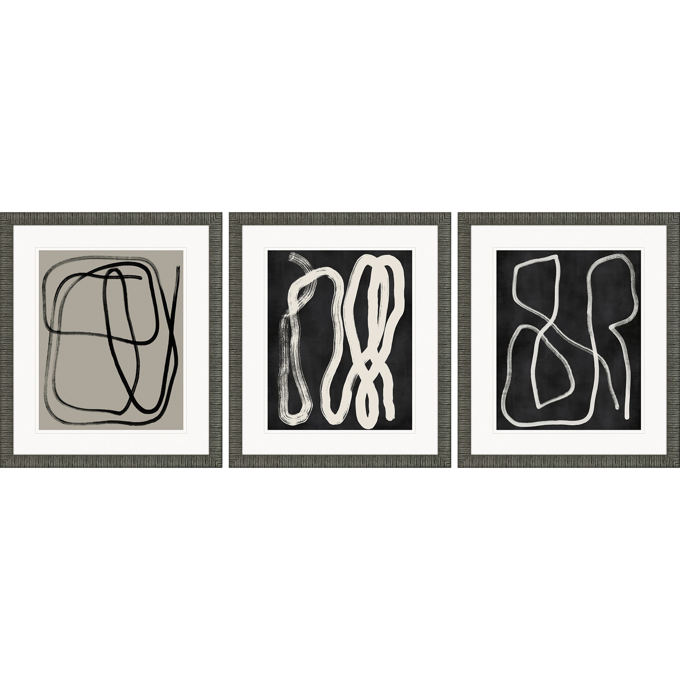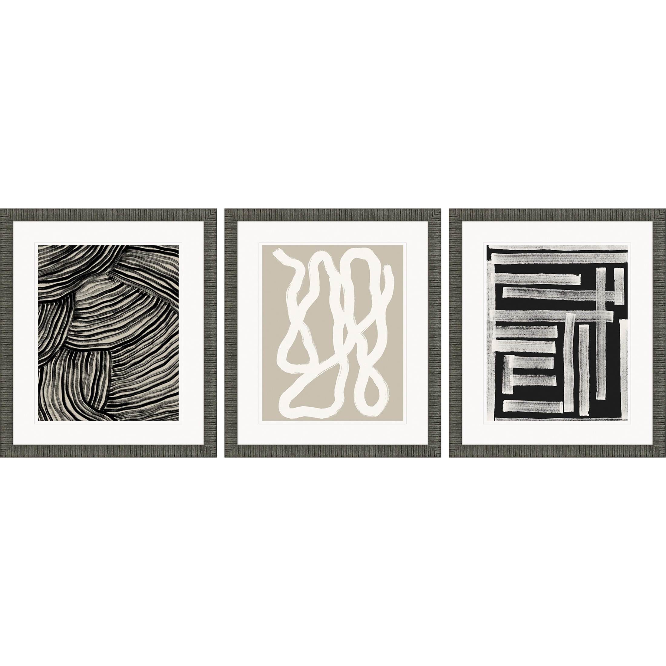 Naive Lines III S/3 Framed Art Giclee Under Glass - Black