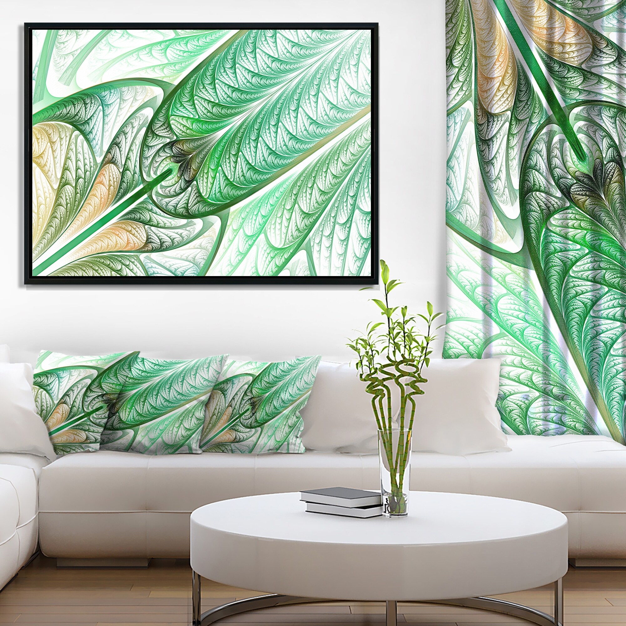 Designart "Green on White Fractal Stained Glass" Abstract Wall Art Framed Canvas