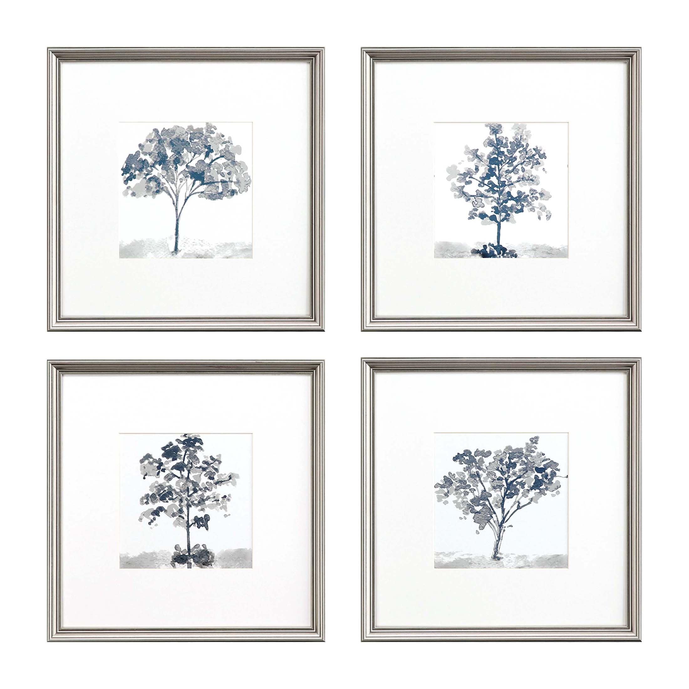 Slate Trees S/4 Framed Art Exclusive Giclee Under Glass - Blue