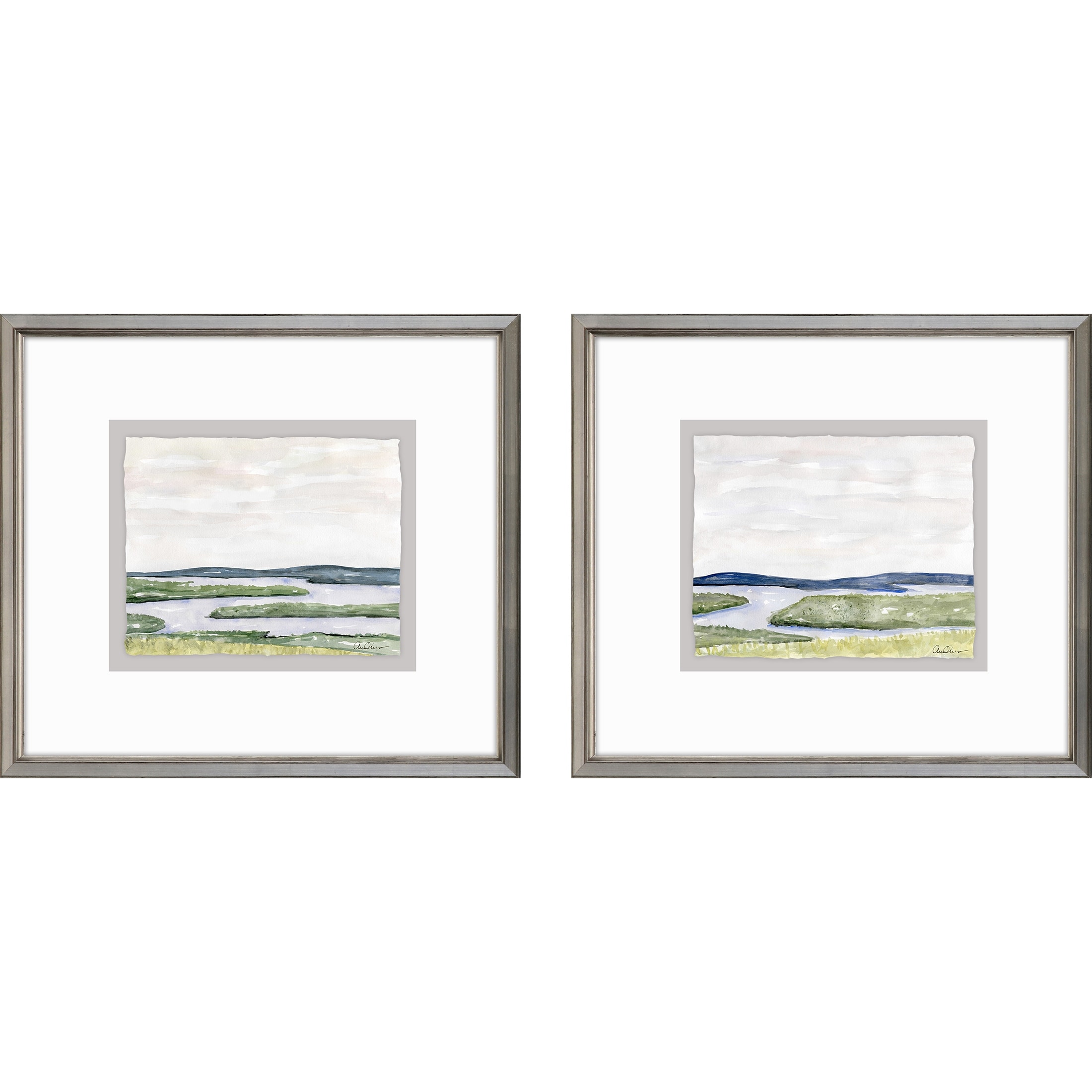 Waterside Marsh S/2 Framed Art Giclee Under Glass - Blue