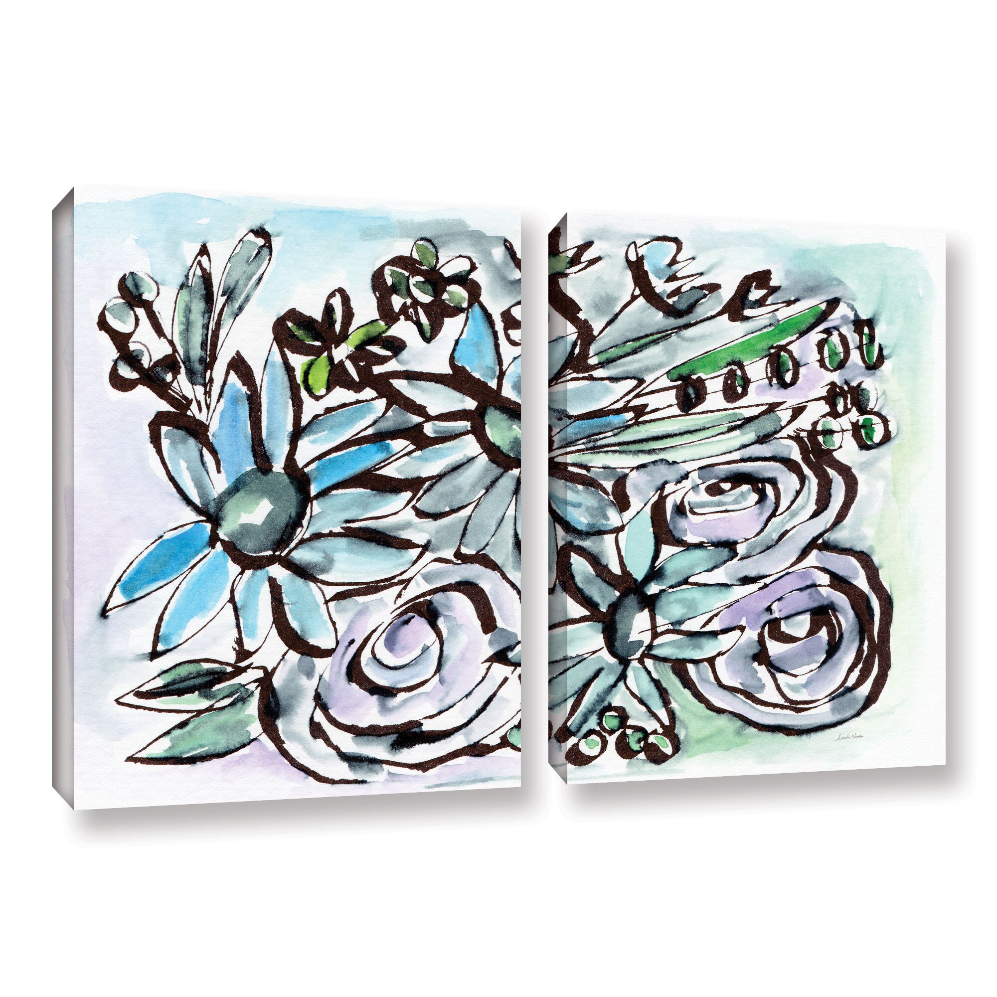 Linda Woods's 'Beach Glass Flowers 2' 2 Piece Gallery Wrapped Canvas Set