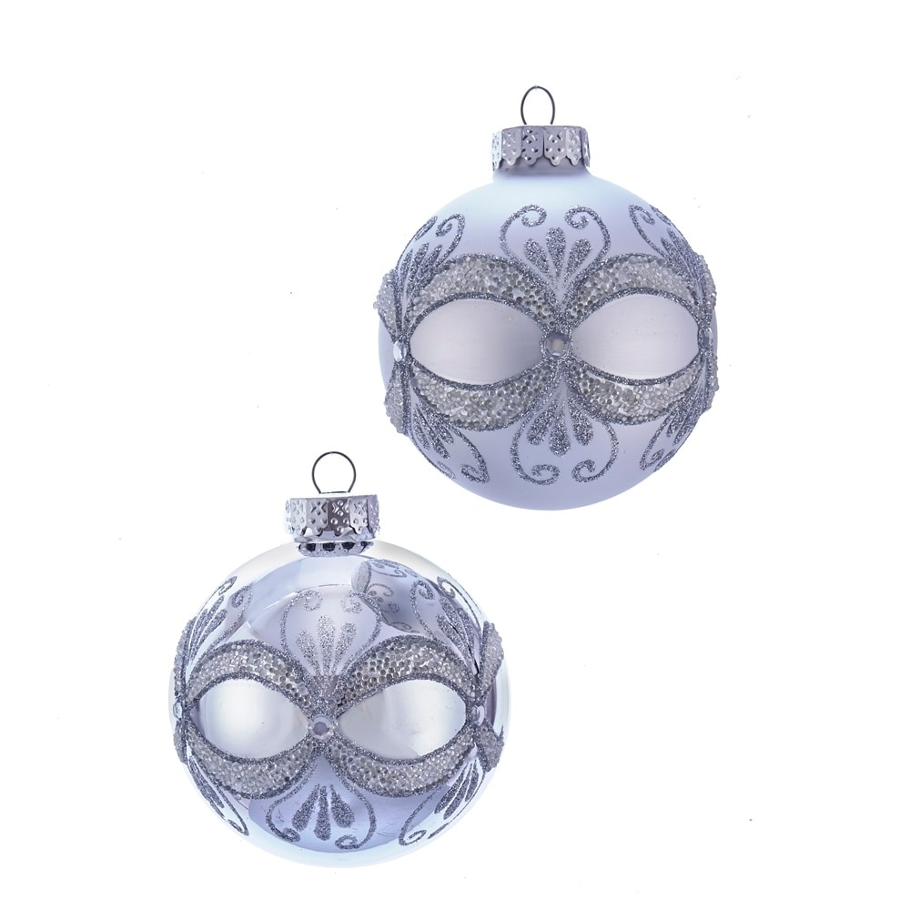 Kurt Adler 80MM Silver with Glitter and Sequins Glass Ball Ornaments, 6 Piece Box