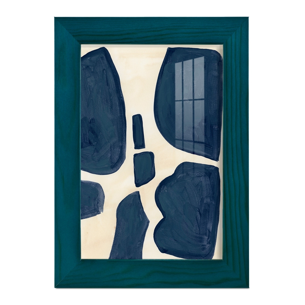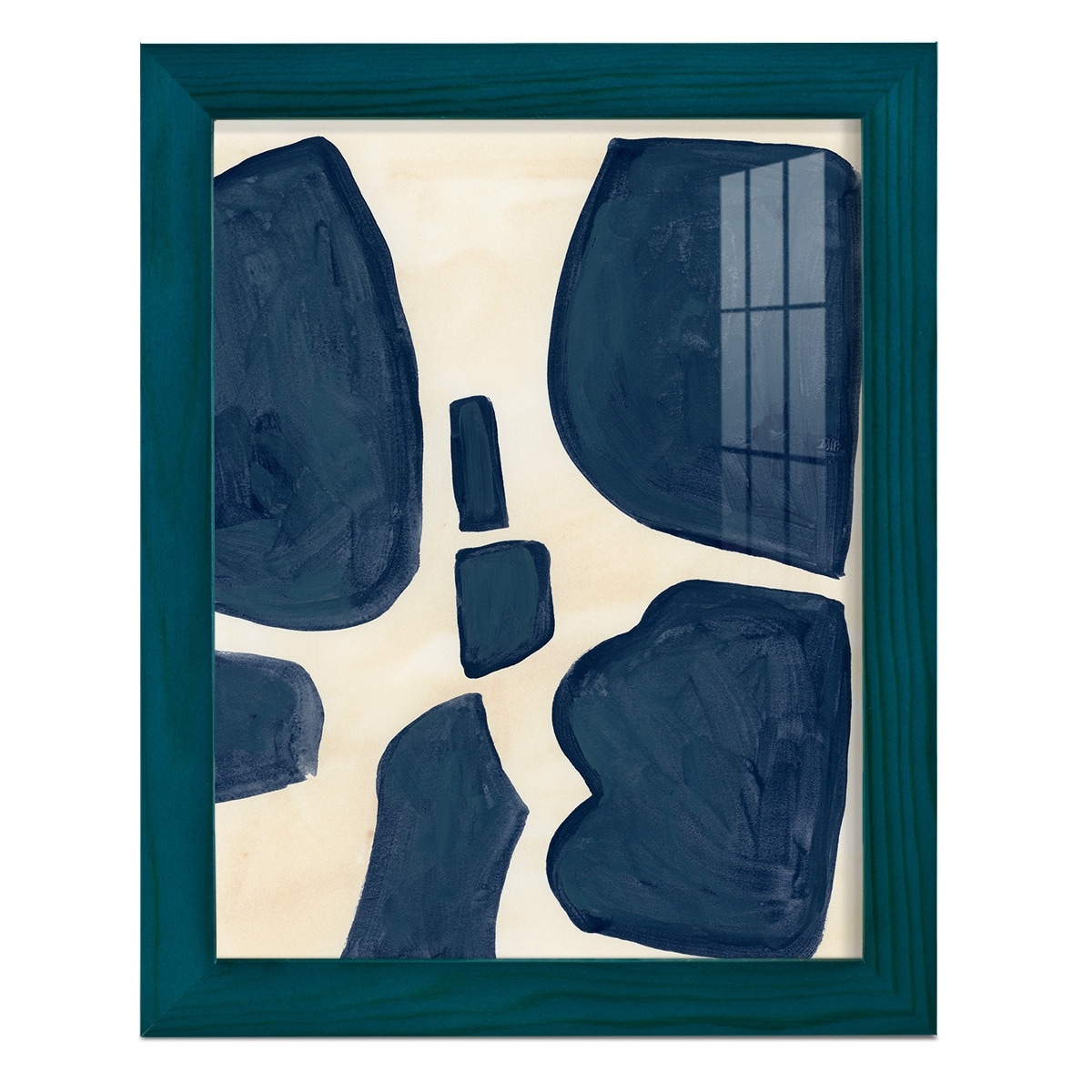 Blue Pieces II -Framed Print w/glass-Cherry Red
