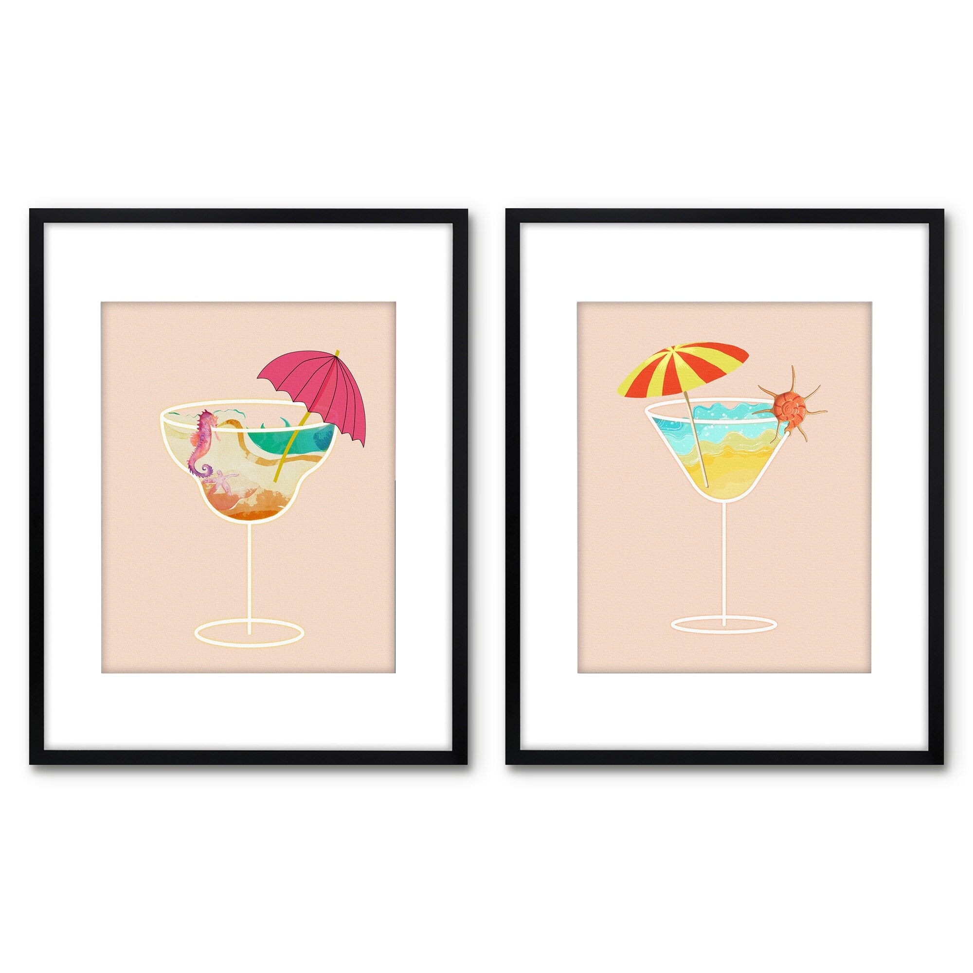 Americanflat 2 Piece 11x14 Matted Framed Print Set - Beach in A Glass by PI Creative Art