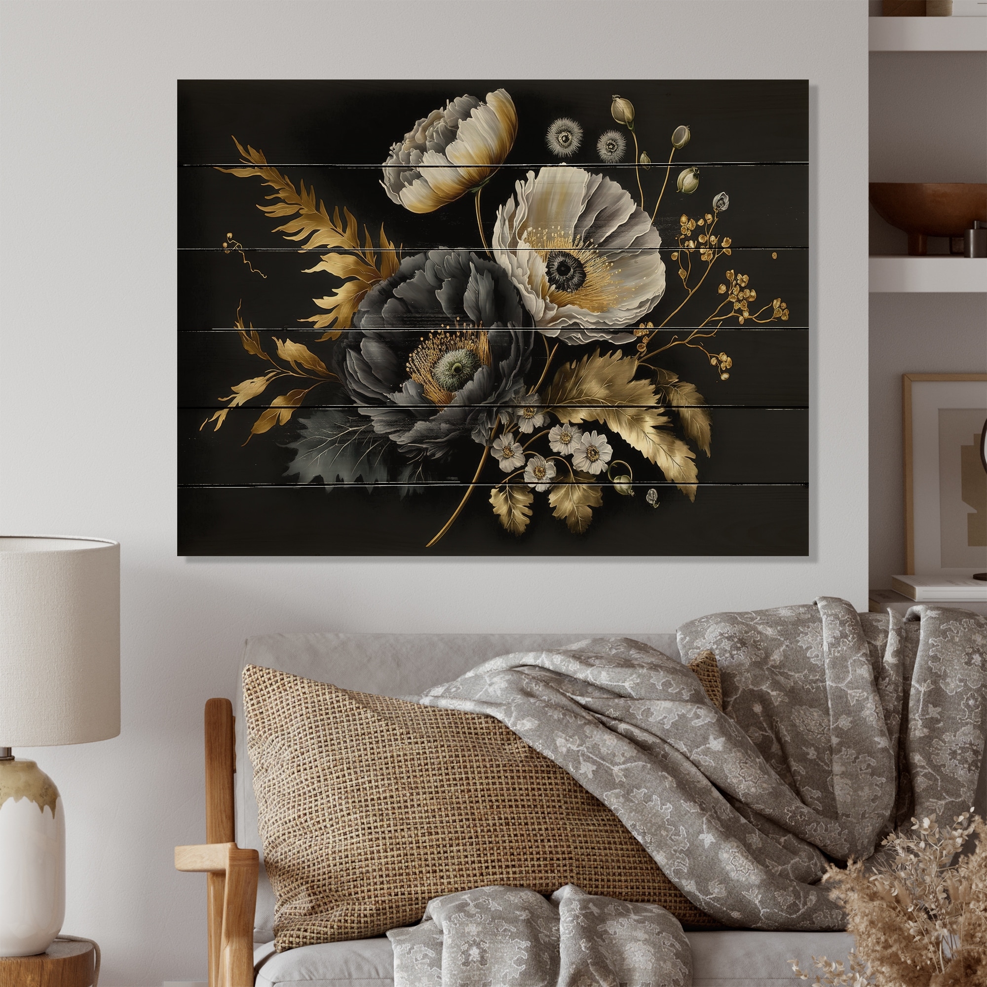 Designart 'Golden Gothic Floral Bouquet III' Floral Wood Wall Art - Natural Pine Wood