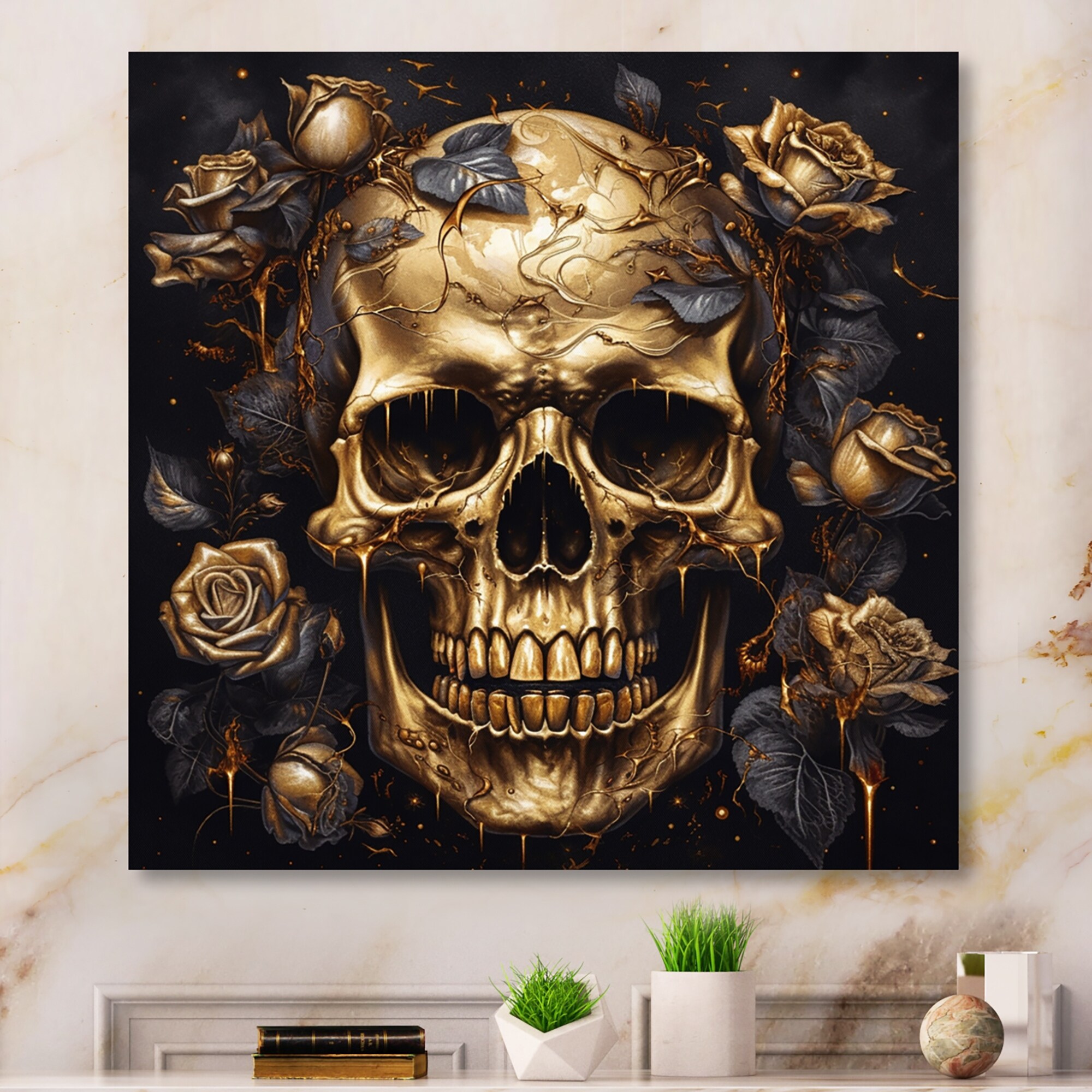 Designart "Gothic Skull Roses" Abstract Floral Wall Art Prints