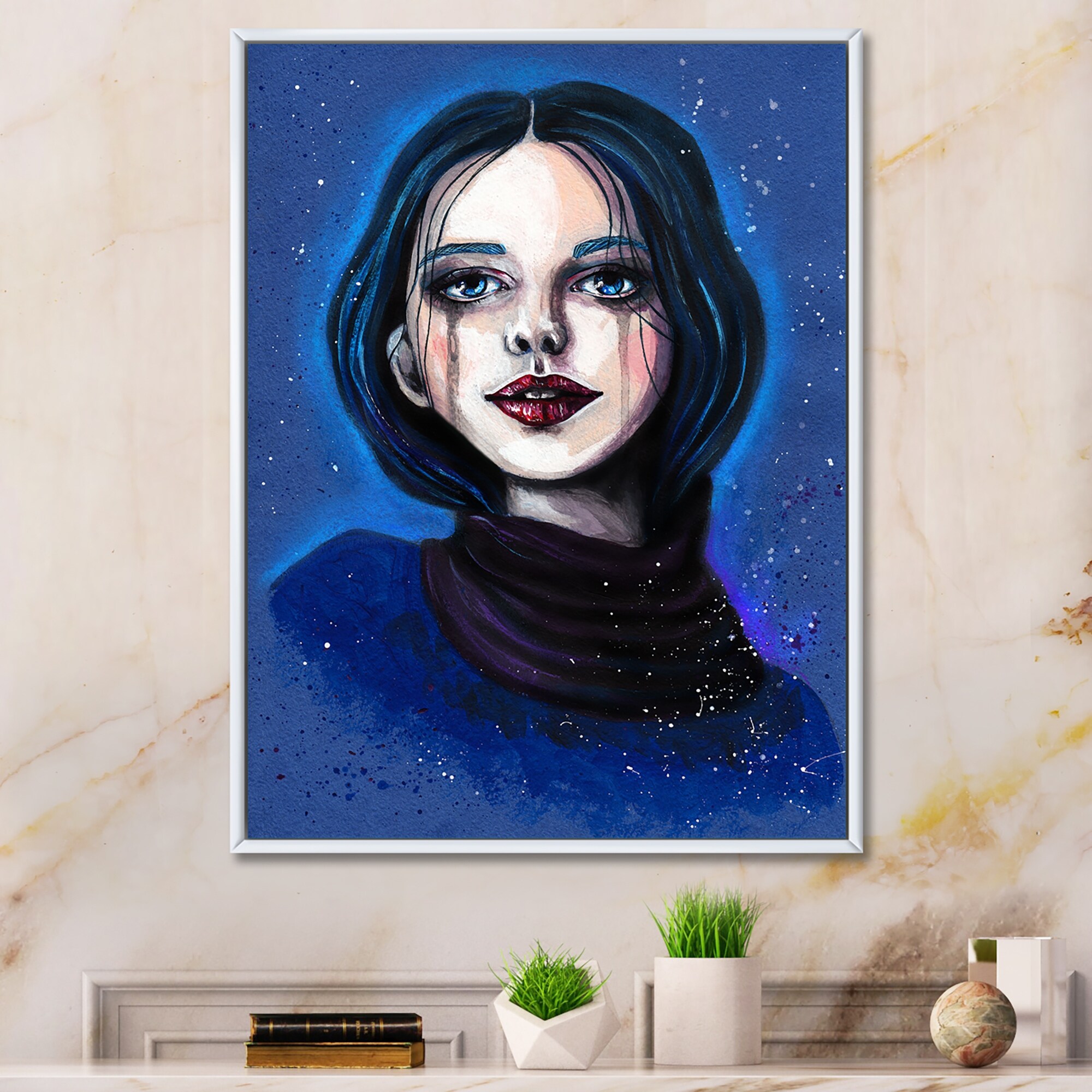 Designart "Gothic Galaxy Girl Portrait" Glam Framed Canvas Wall Art
