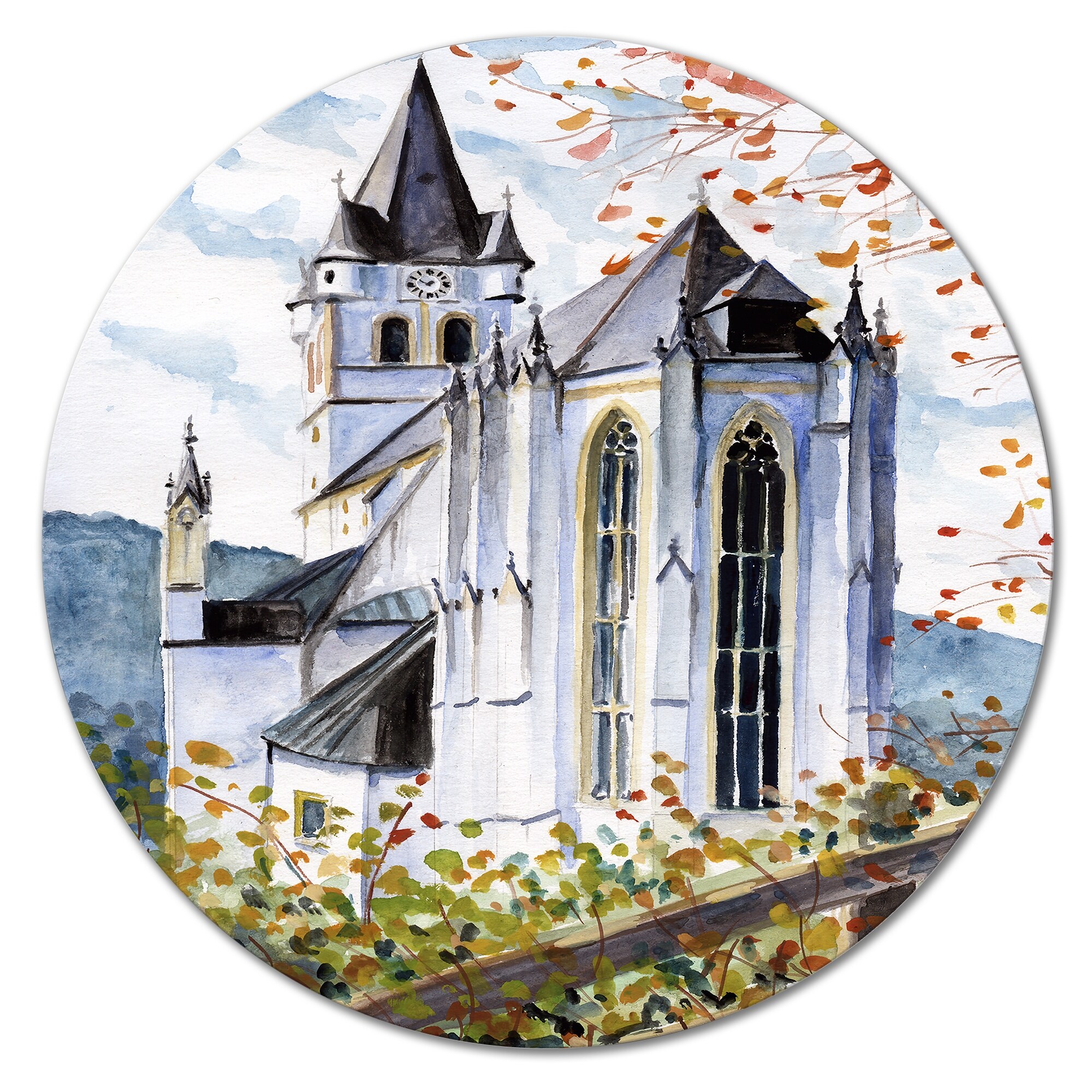 Designart 'Gothic Church in the Green' Mid-Century Modern Metal Circle Wall Art