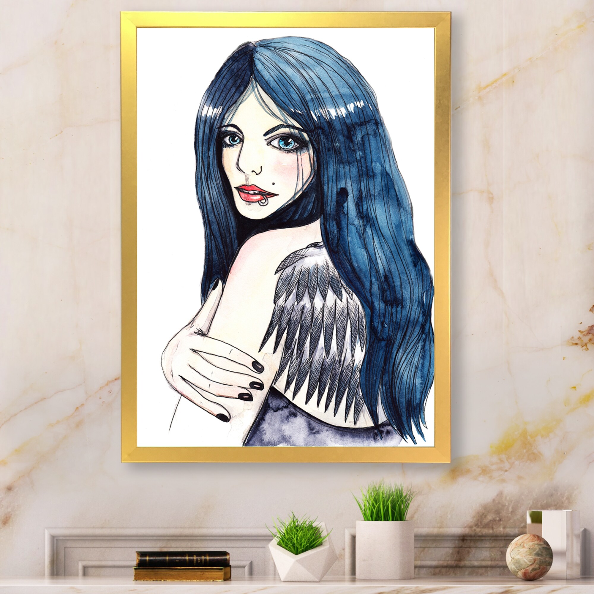 Designart "Gothic Girl With Tattoo" Glam Framed Wall Art
