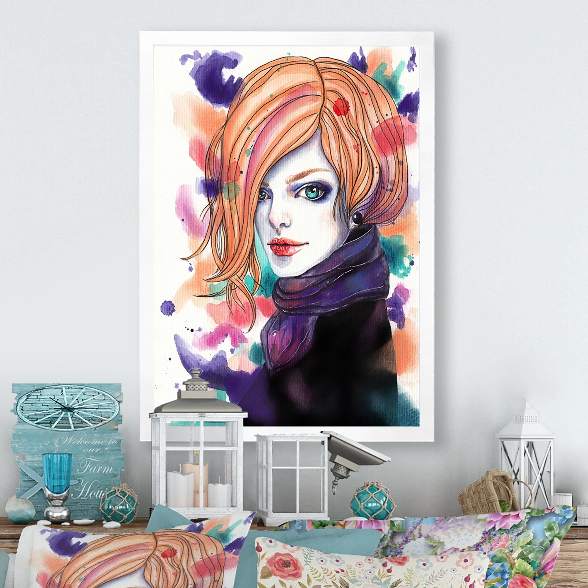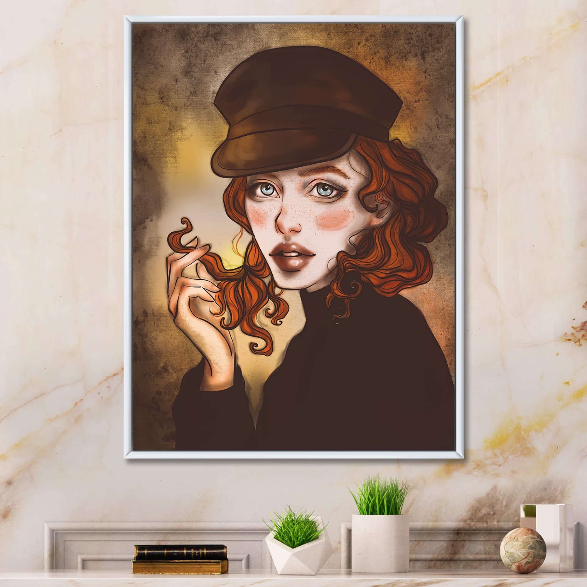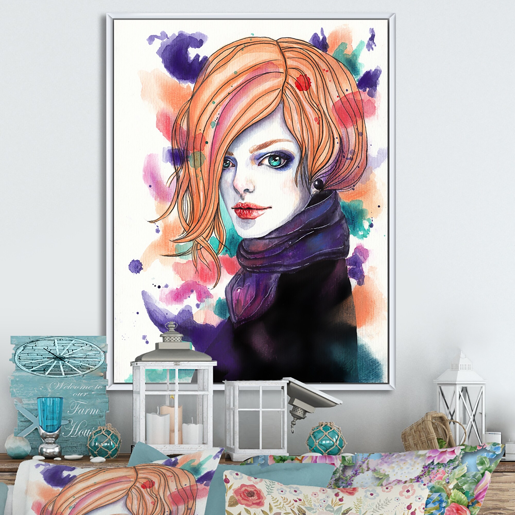 Designart "Gothic Red Hair Girl" Glam Framed Canvas artwork