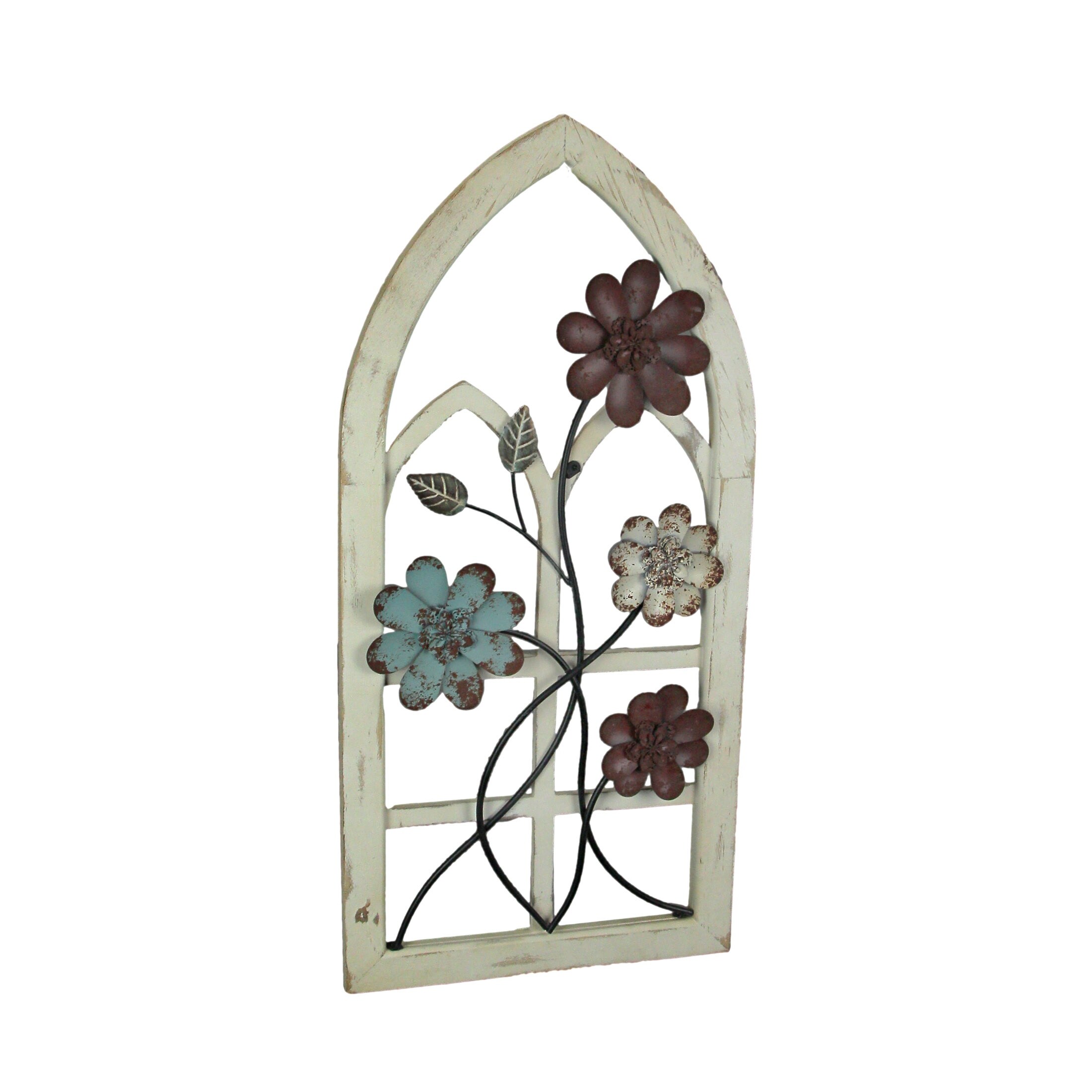 Distressed Wood Framed Gothic Cathedral Arch Wall Hanging With Metal