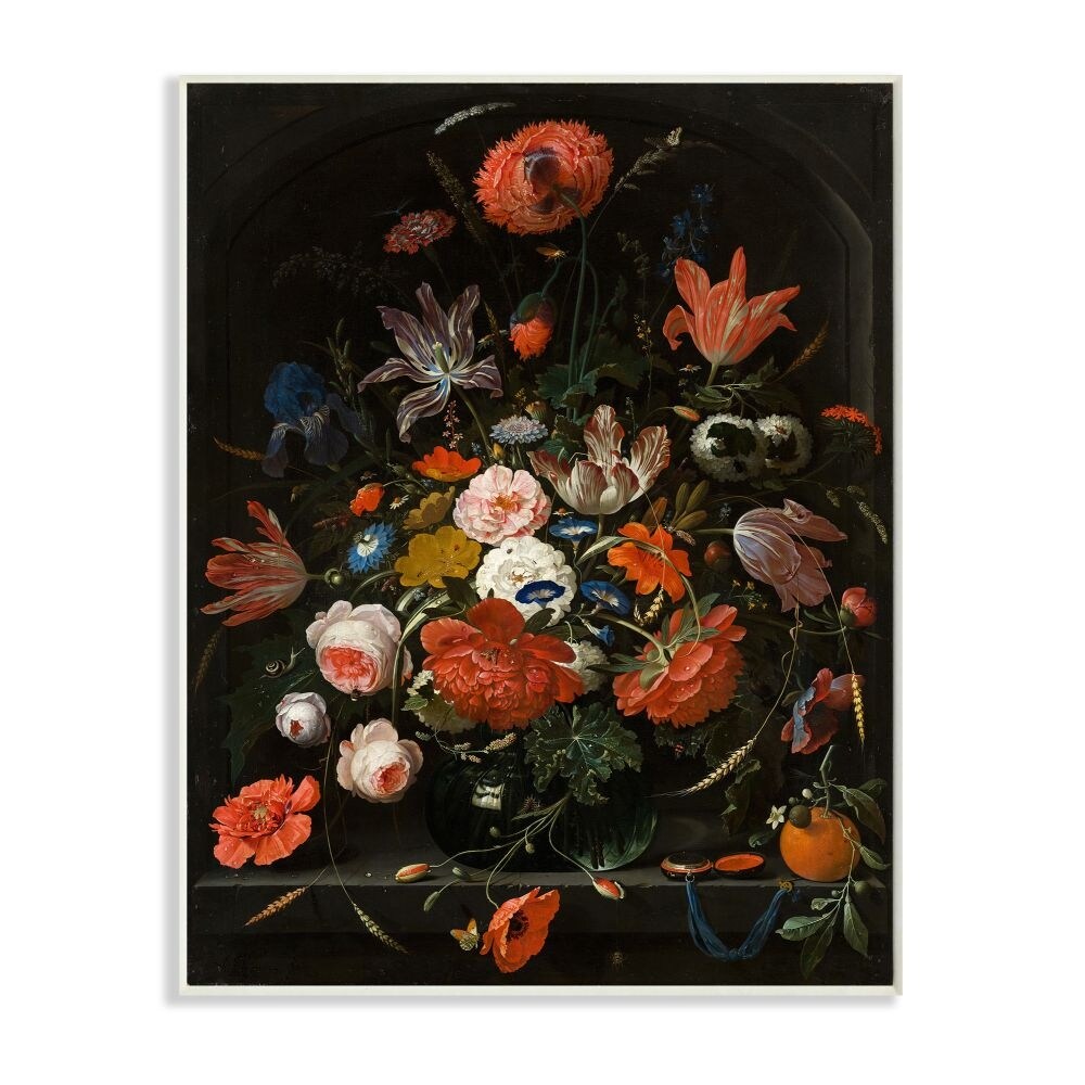 Stupell Coral Florals over Dark Bouquet and Gothic Arch Wood Wall Art - Multi-Color