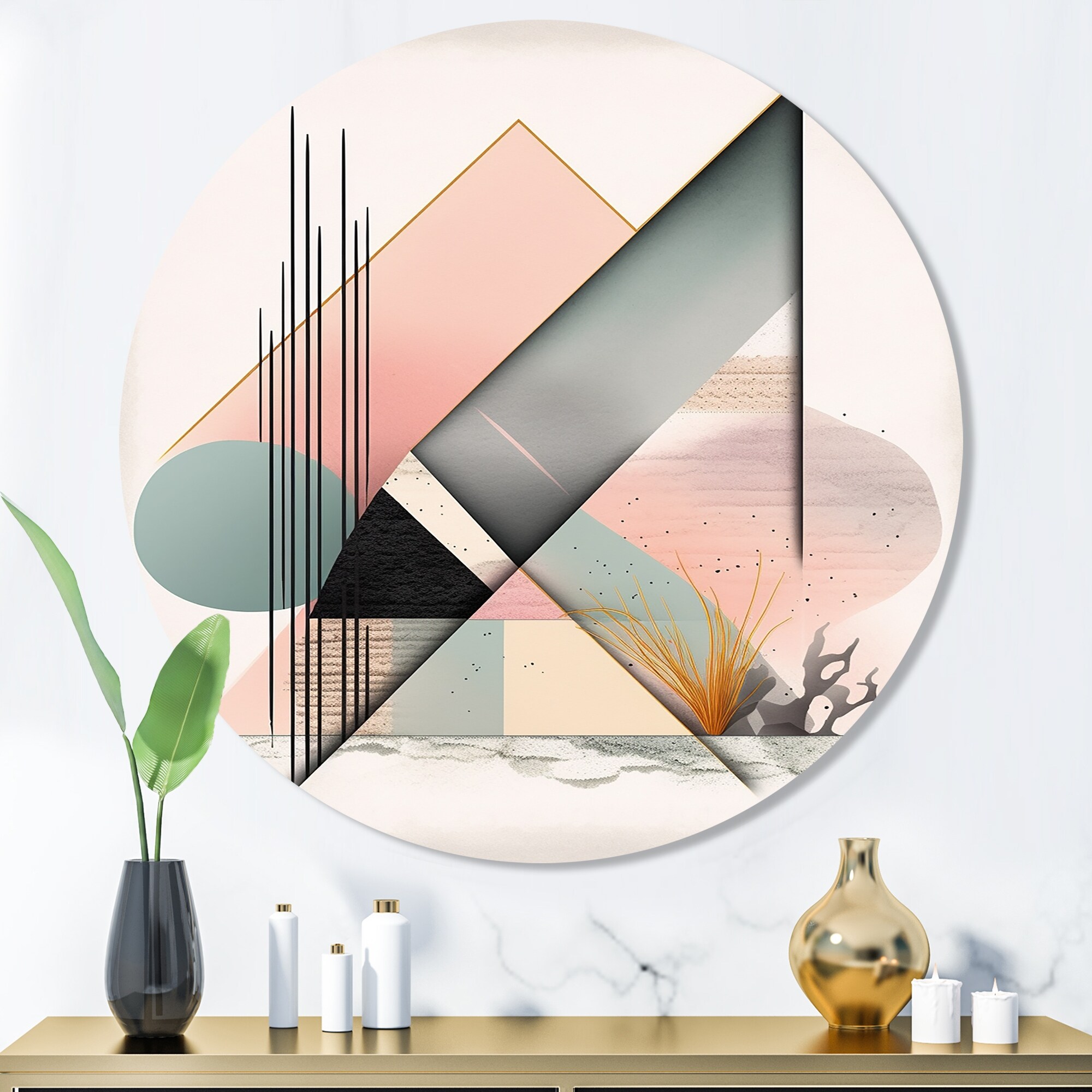 Designart "Pink Minimalism Transient Grace II" Minimalism Metal Round Wall Art