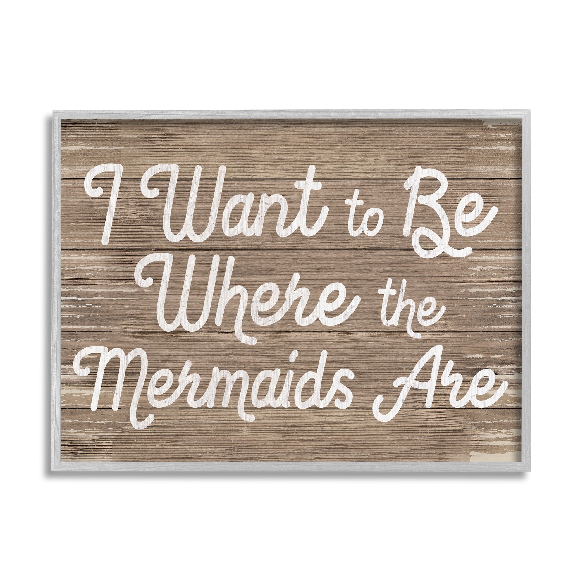 Stupell Be Where Mermaids Are Phrase Rustic Nautical Grain Framed Wall Art