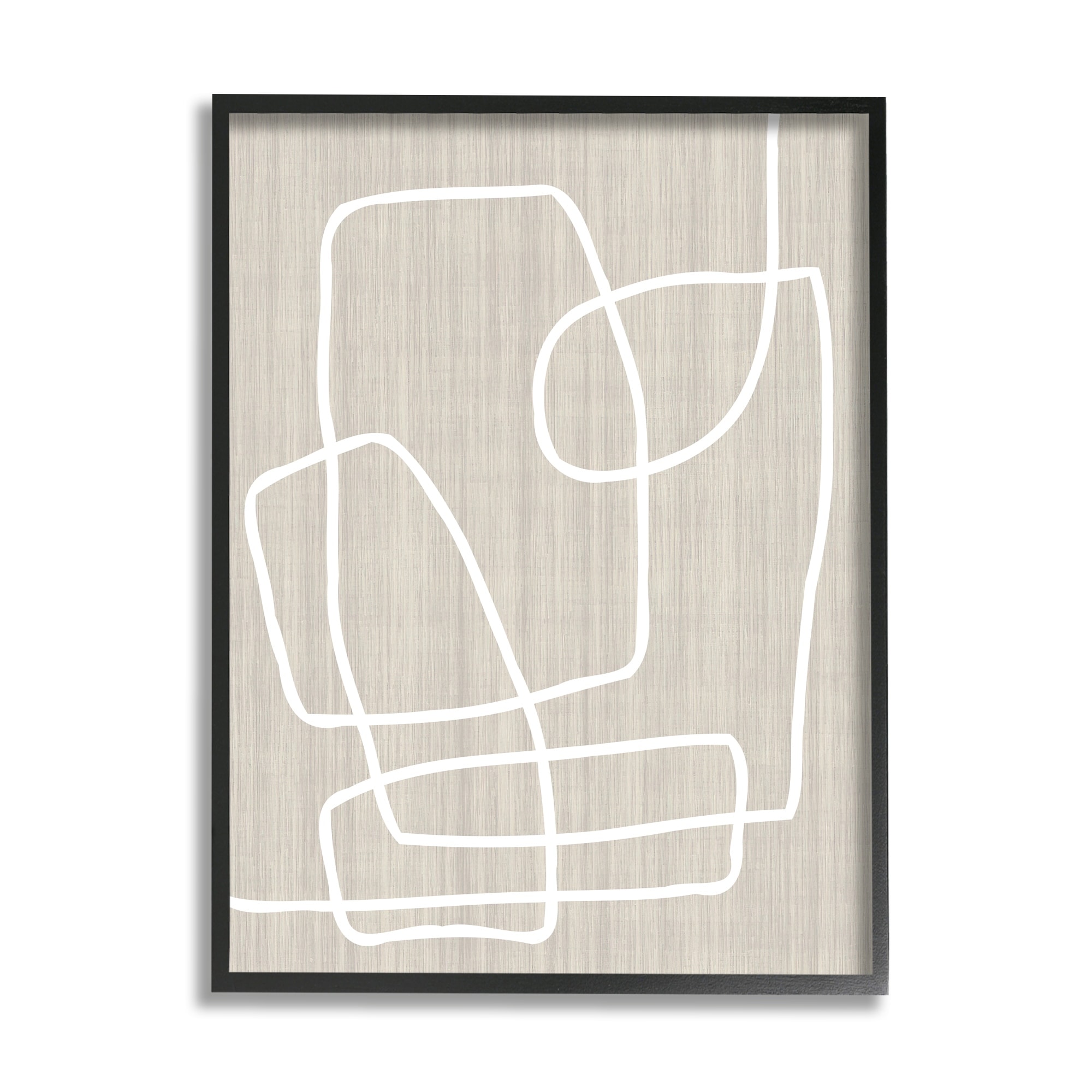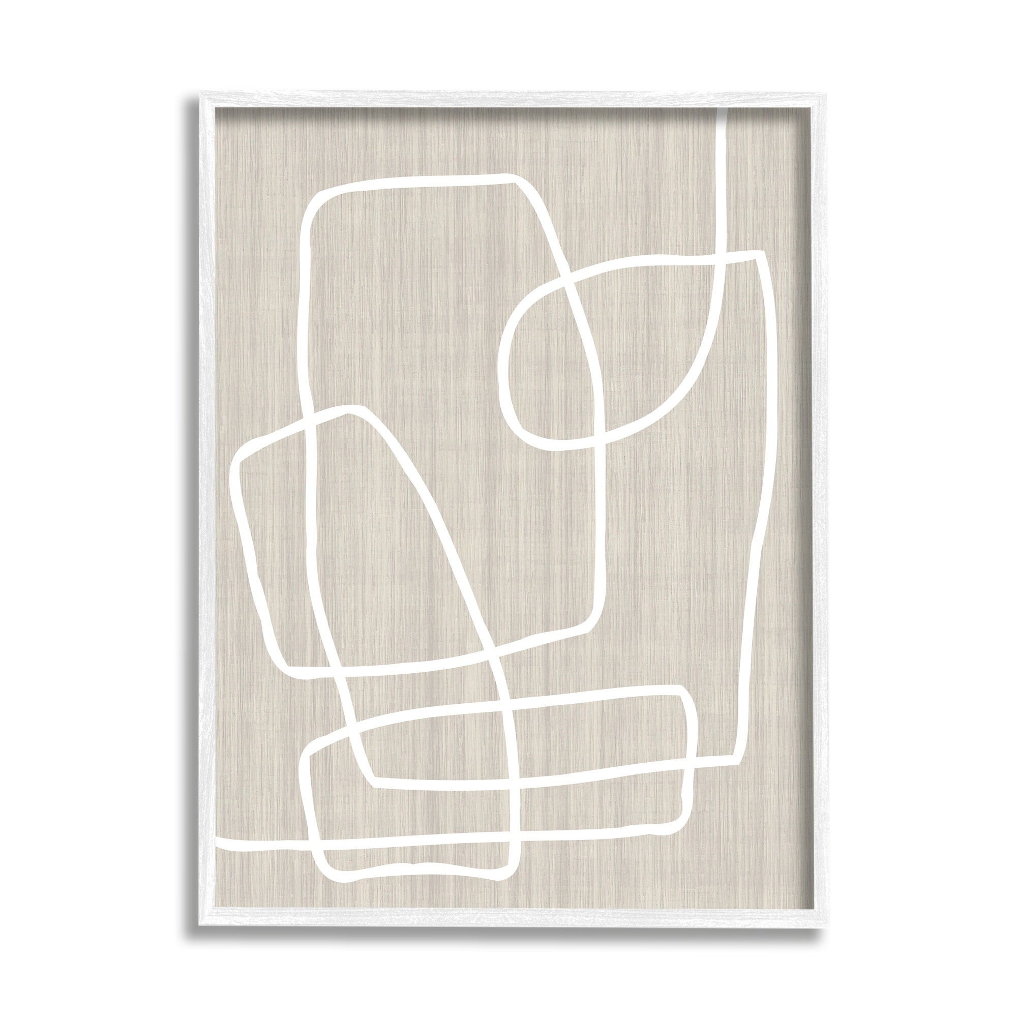Stupell Industries Contemporary White Line Shapes Minimal Grain Design Framed Wall Art - Beige
