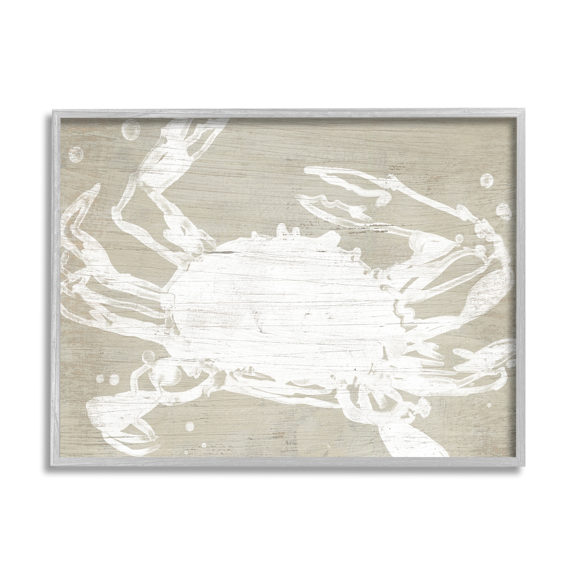 Stupell Industries Muted Ocean Crab Rustic Crustacean Grain Pattern Framed Wall Art - Tan