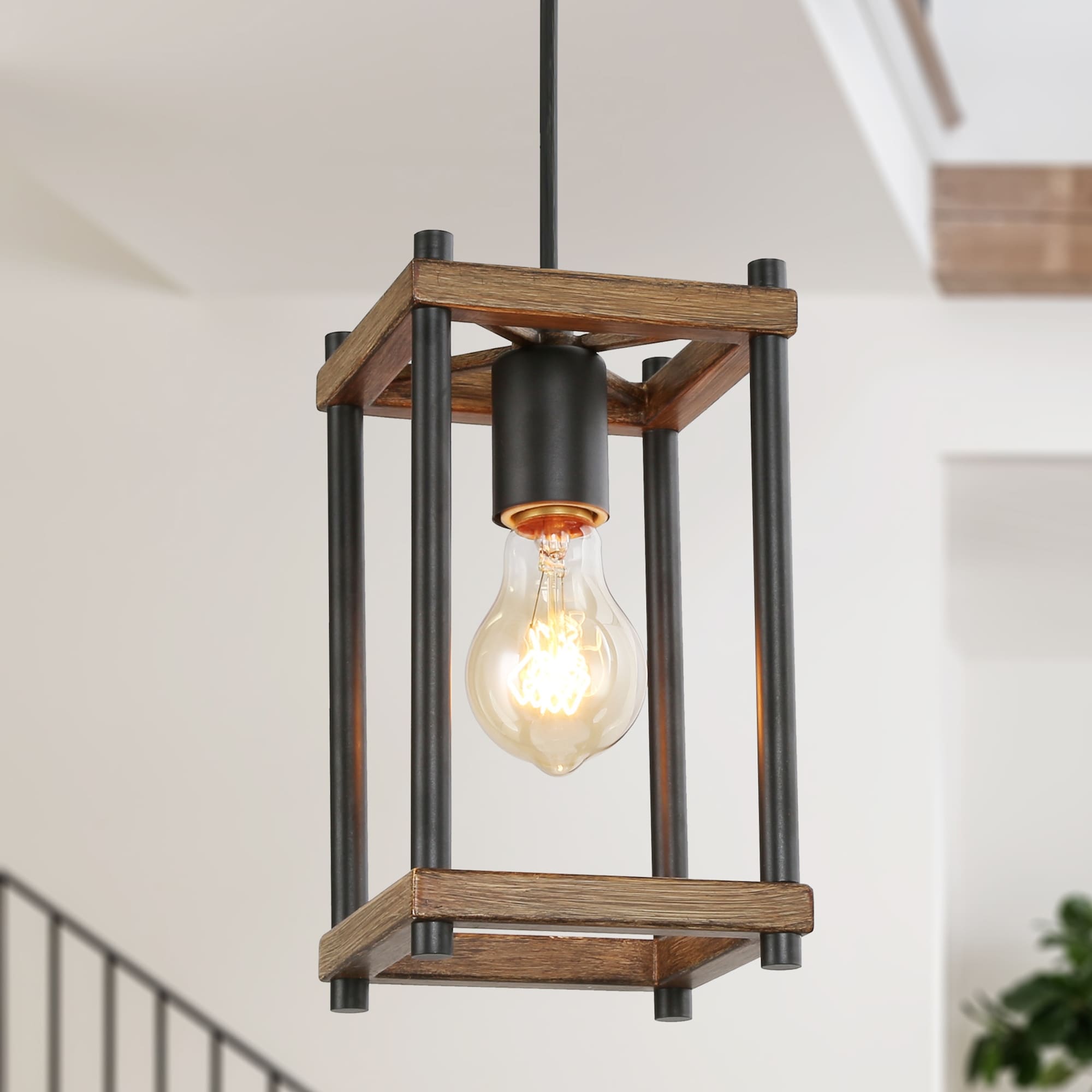 Modern Farmhouse 1-Light Lantern Wood Grain Kitchen Island Pendant Lights - L5'' x W5'' x H70''