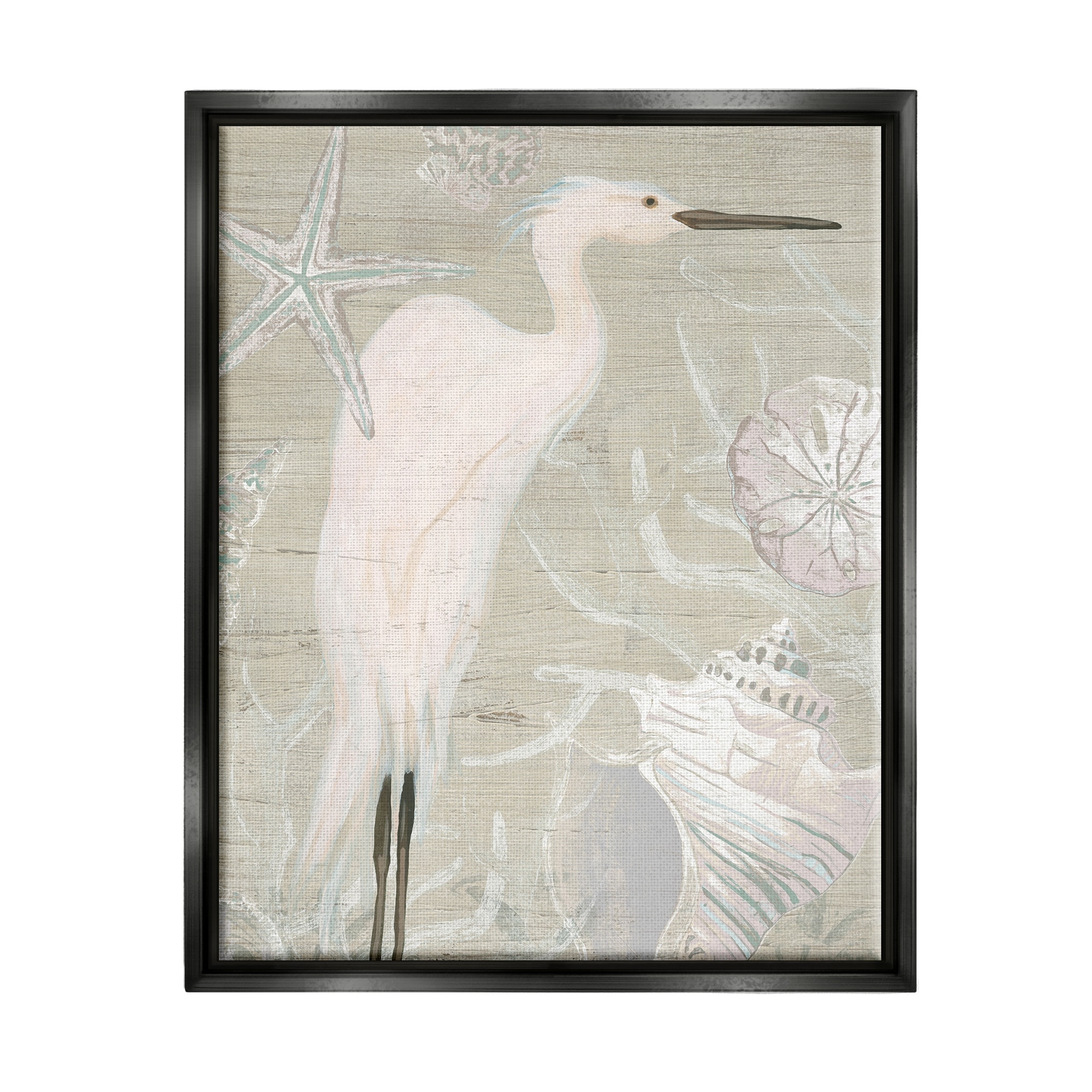 Stupell Industries White Egret Seashells Starfish Rustic Grain Pattern Floater Frame, Design by June Erica Vess
