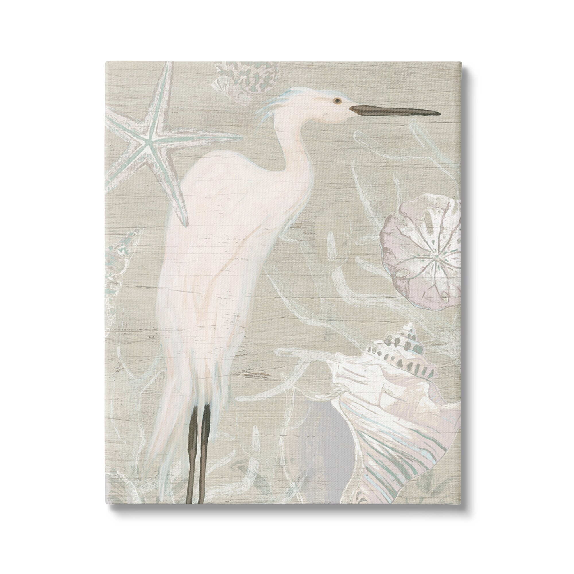 Stupell White Egret Seashells Starfish Rustic Grain Pattern Canvas Wall Art, Design by June Erica Vess