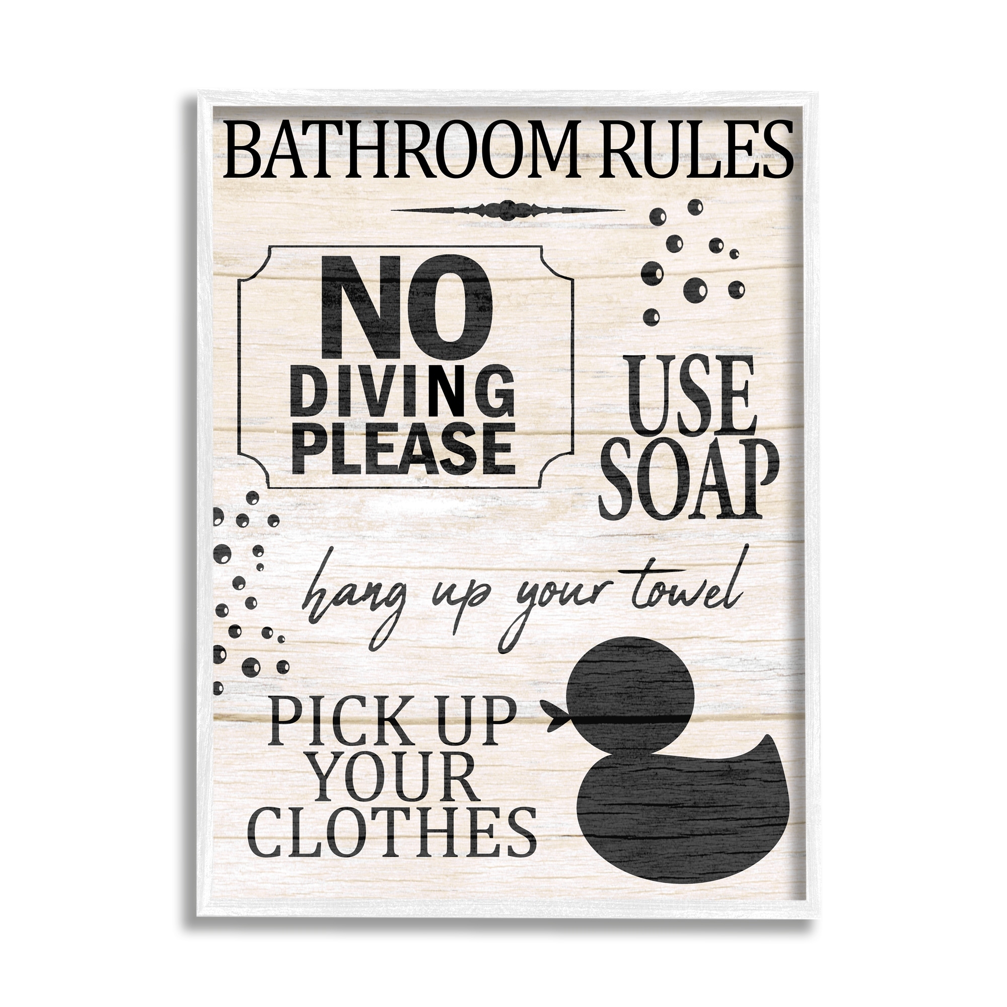 Stupell Industries Bathroom Rules Rustic Grain Pattern Design Sign Framed Wall Art - Off-White