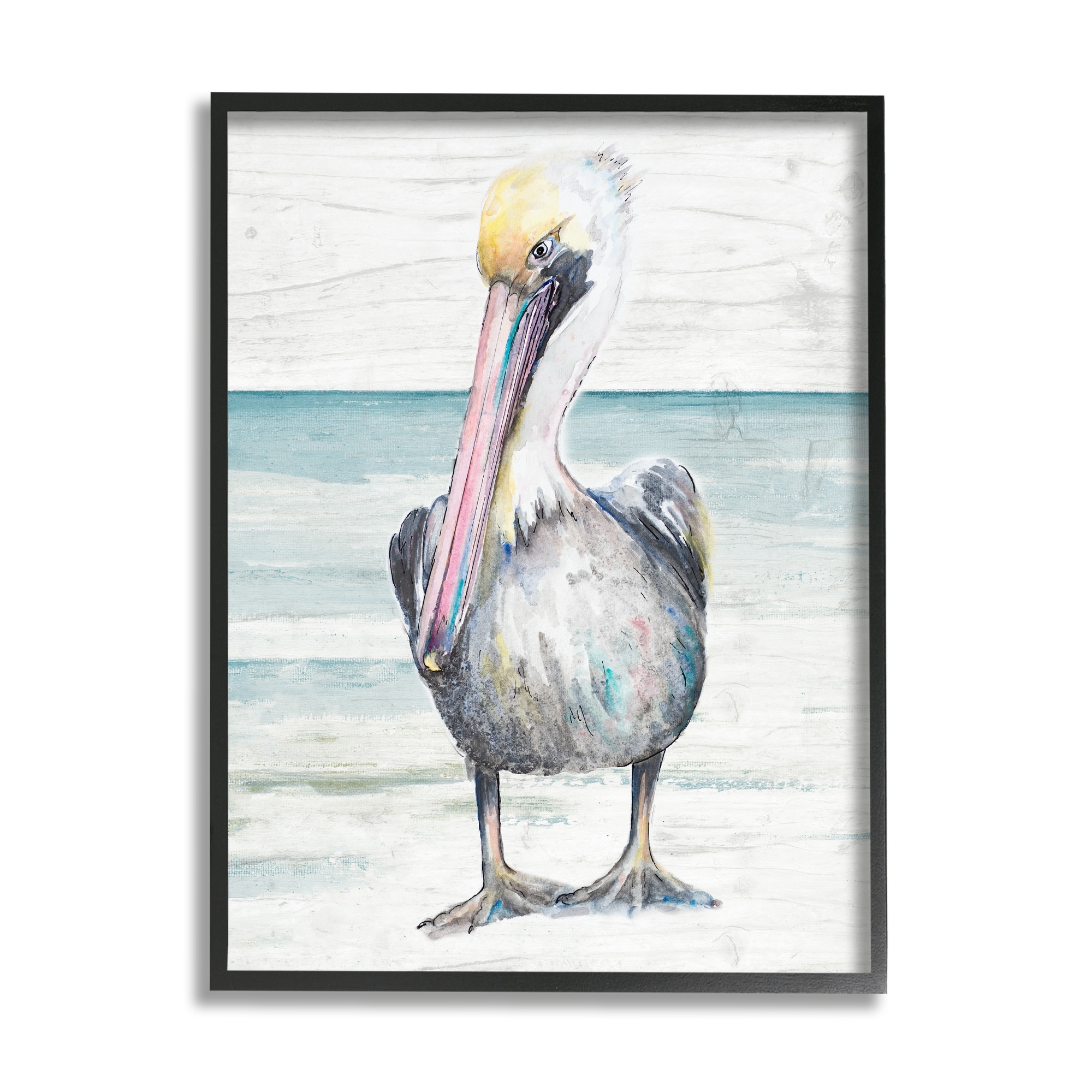 Stupell Industries Pelican Bird Standing Beach Sand Grain Pattern Framed Wall Art, Design by Patricia Pinto