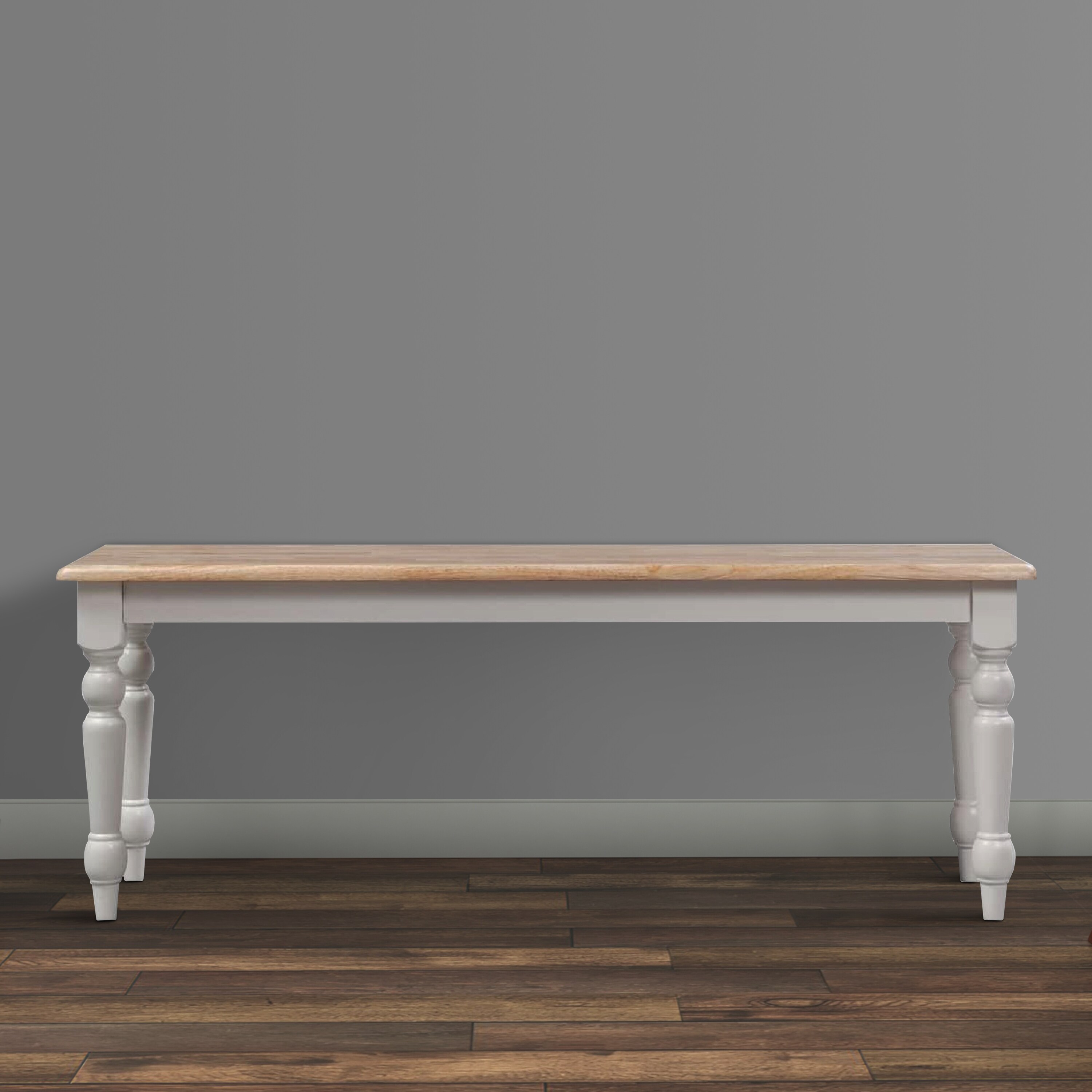 Grained Rectangular Wooden Bench with Turned Legs, Natural Brown and White
