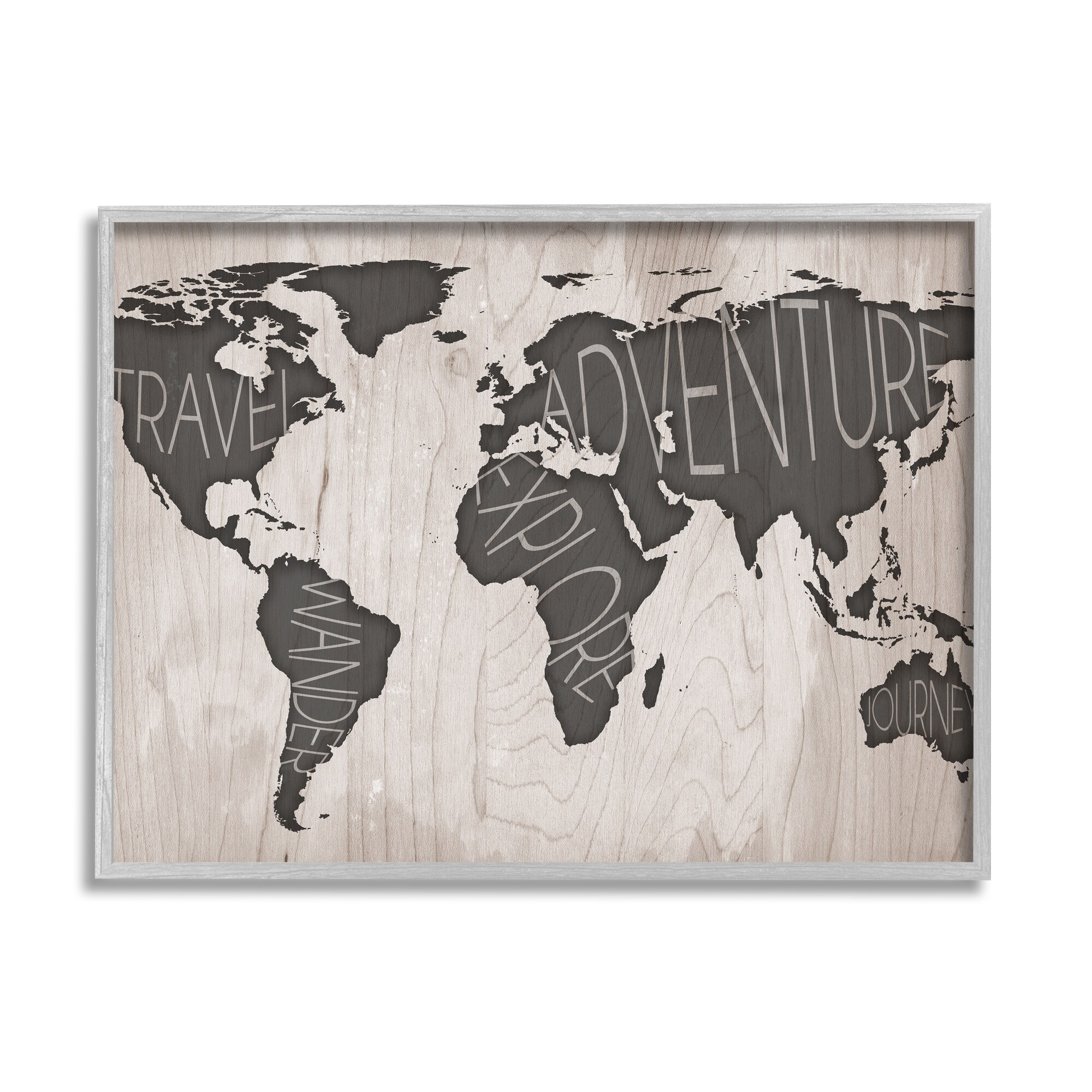 Stupell Travel Wander Explore Rustic World Map Grain Pattern Framed Wall Art