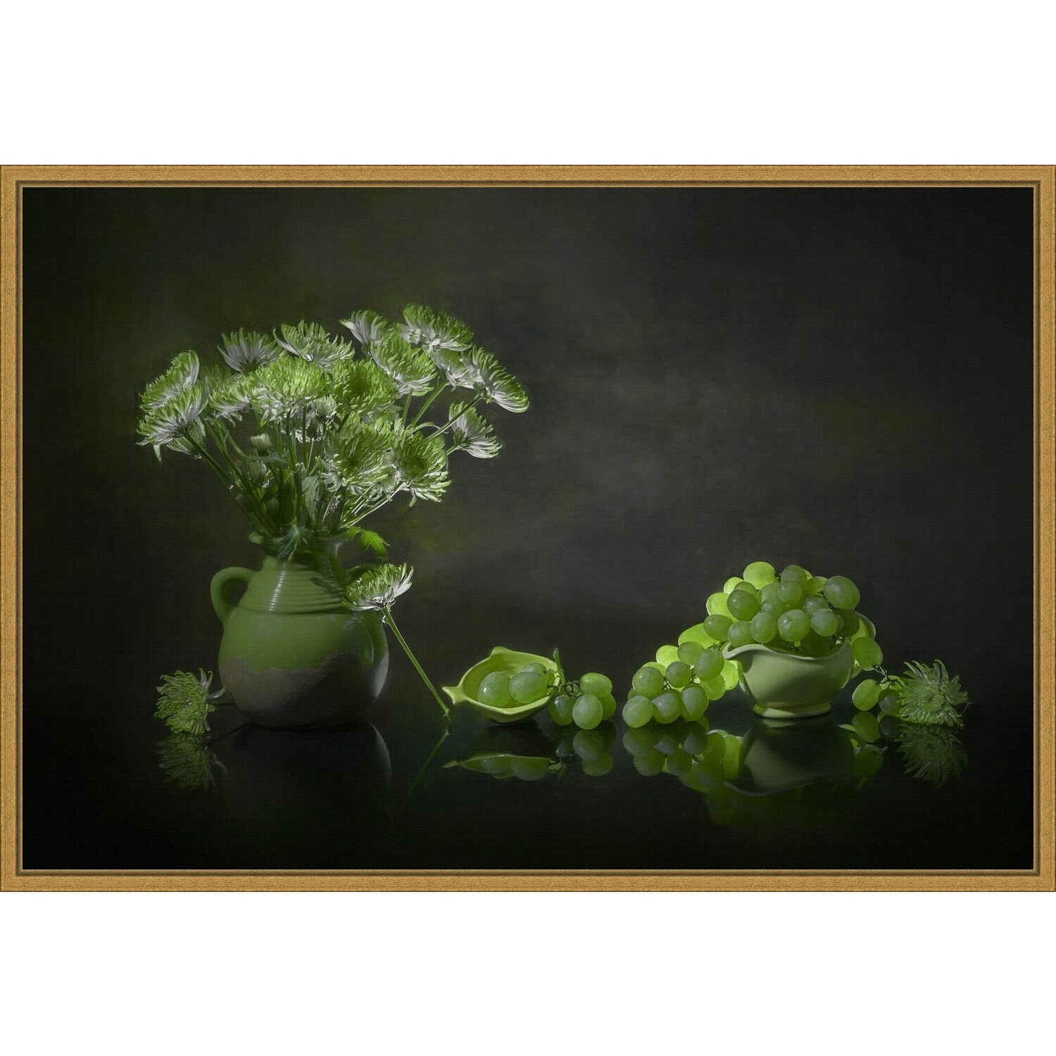 Chrysanthemum and Grape by Lydia Jacobs (23 x 16 in.), Framed Canvas Wall Art Print - Sylvie Gold
