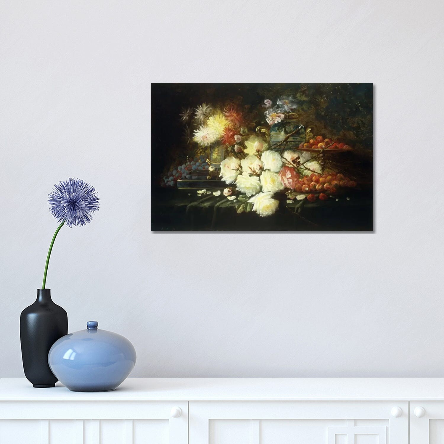 iCanvas "Still life with roses, chrysanthemums, grapes and strawberries" by Modeste Carlier Canvas Print