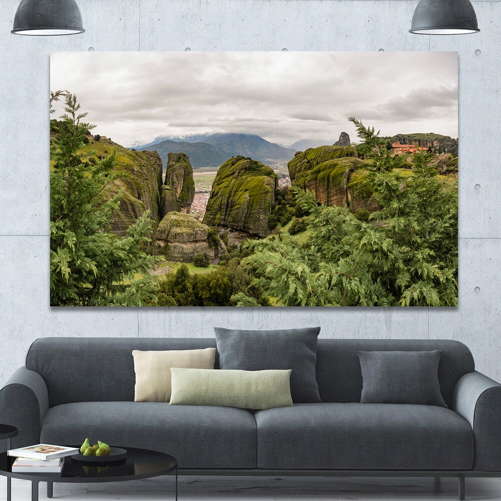 Designart "Meteora Mountain in Greece" Modern Landscpae Wall Art - Multi-color