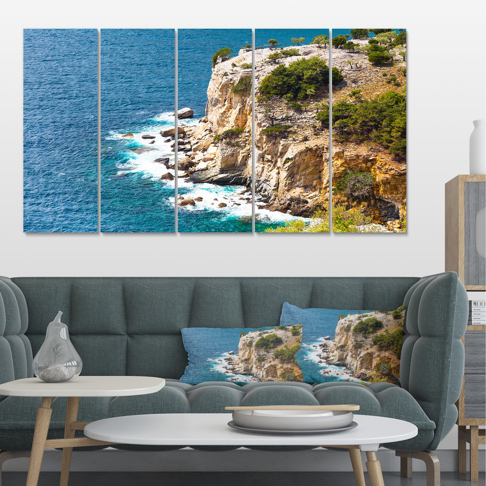 Designart "Rocky Cliff Coast Thassos Greece" Extra Large Seashore Canvas Art