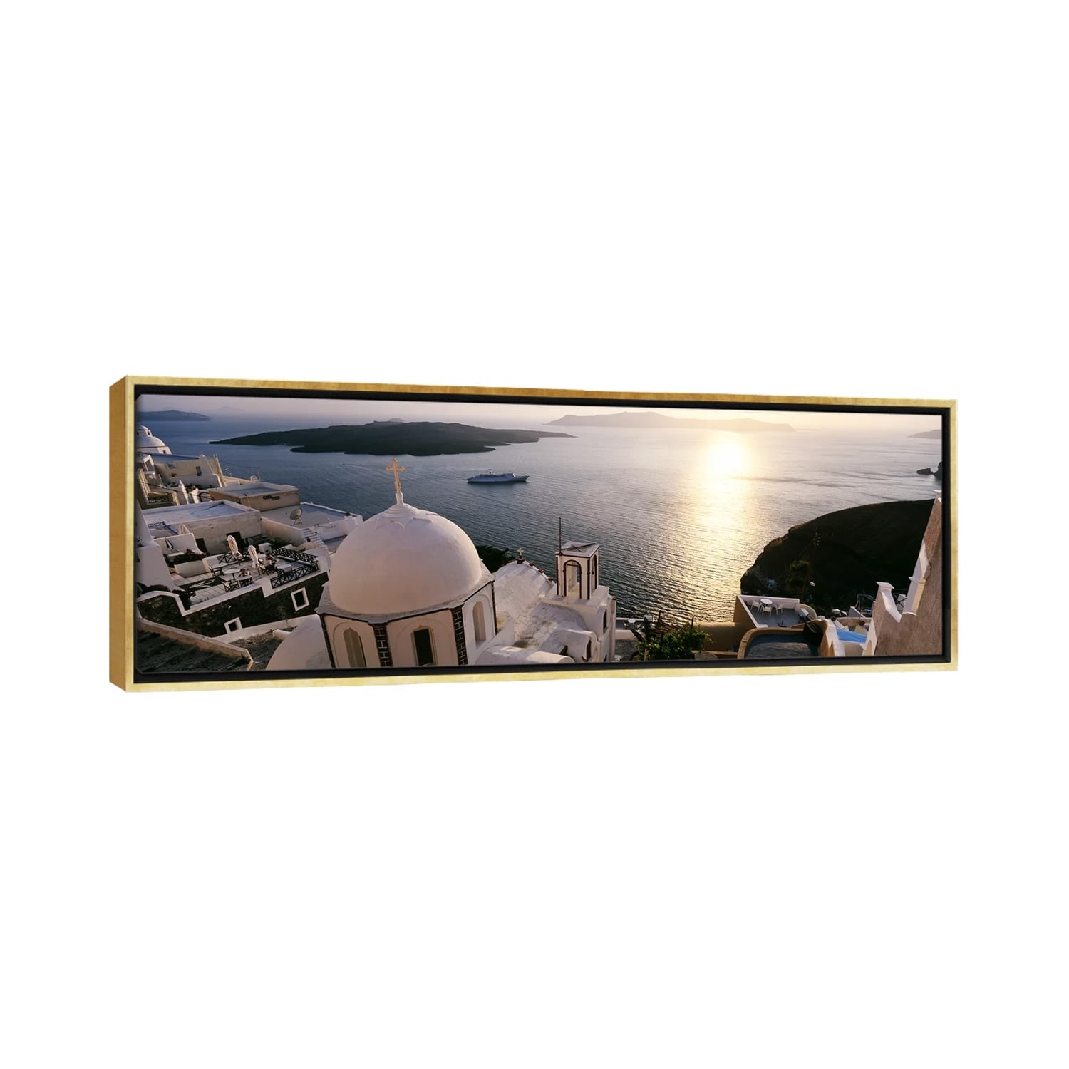 iCanvas "Greece, Santorini, Oia. Sunset on Coastal Town." by Jaynes Gallery Framed Canvas Print