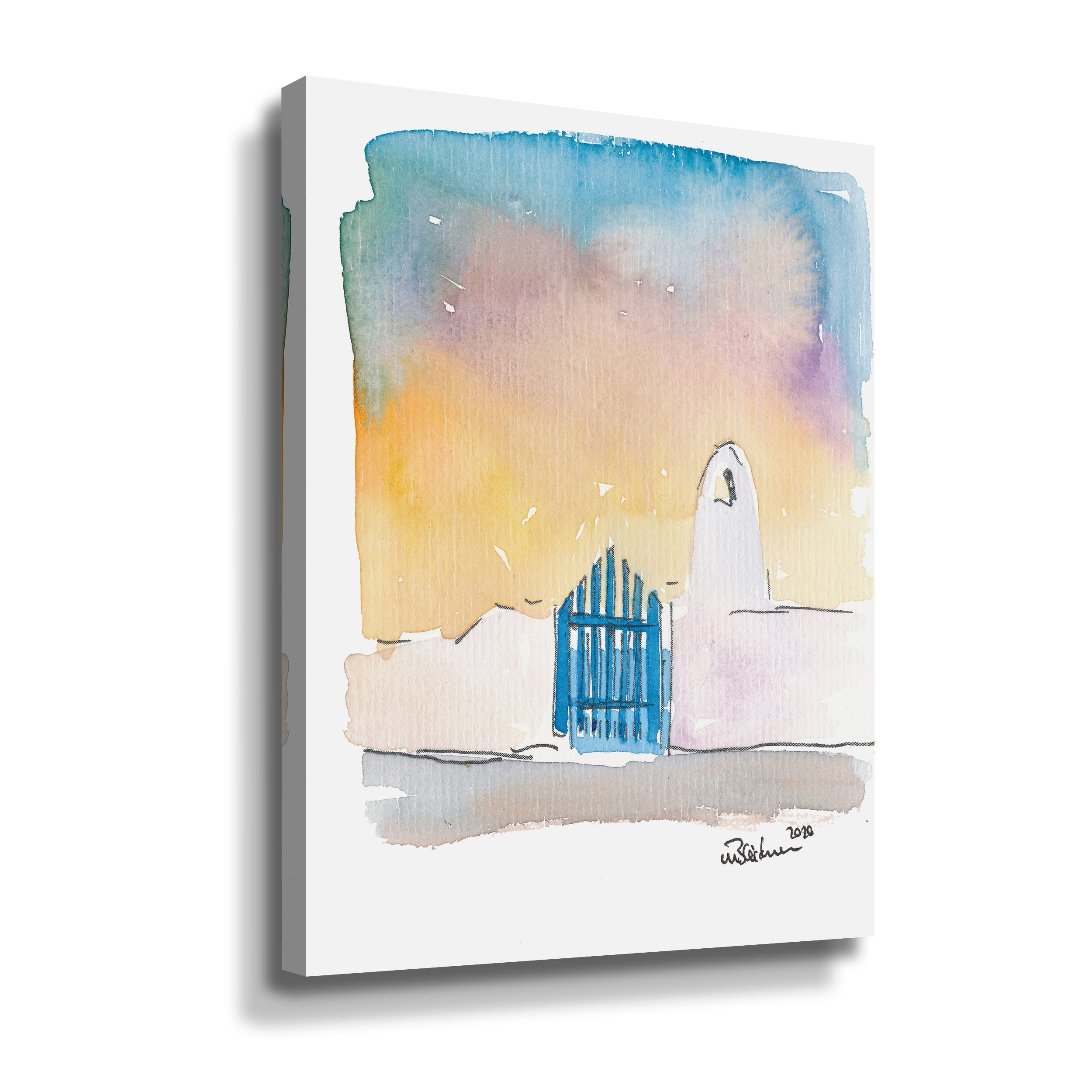 Santorini Blue Gate Sea Greece Gallery Wrapped Canvas - Multi-Color