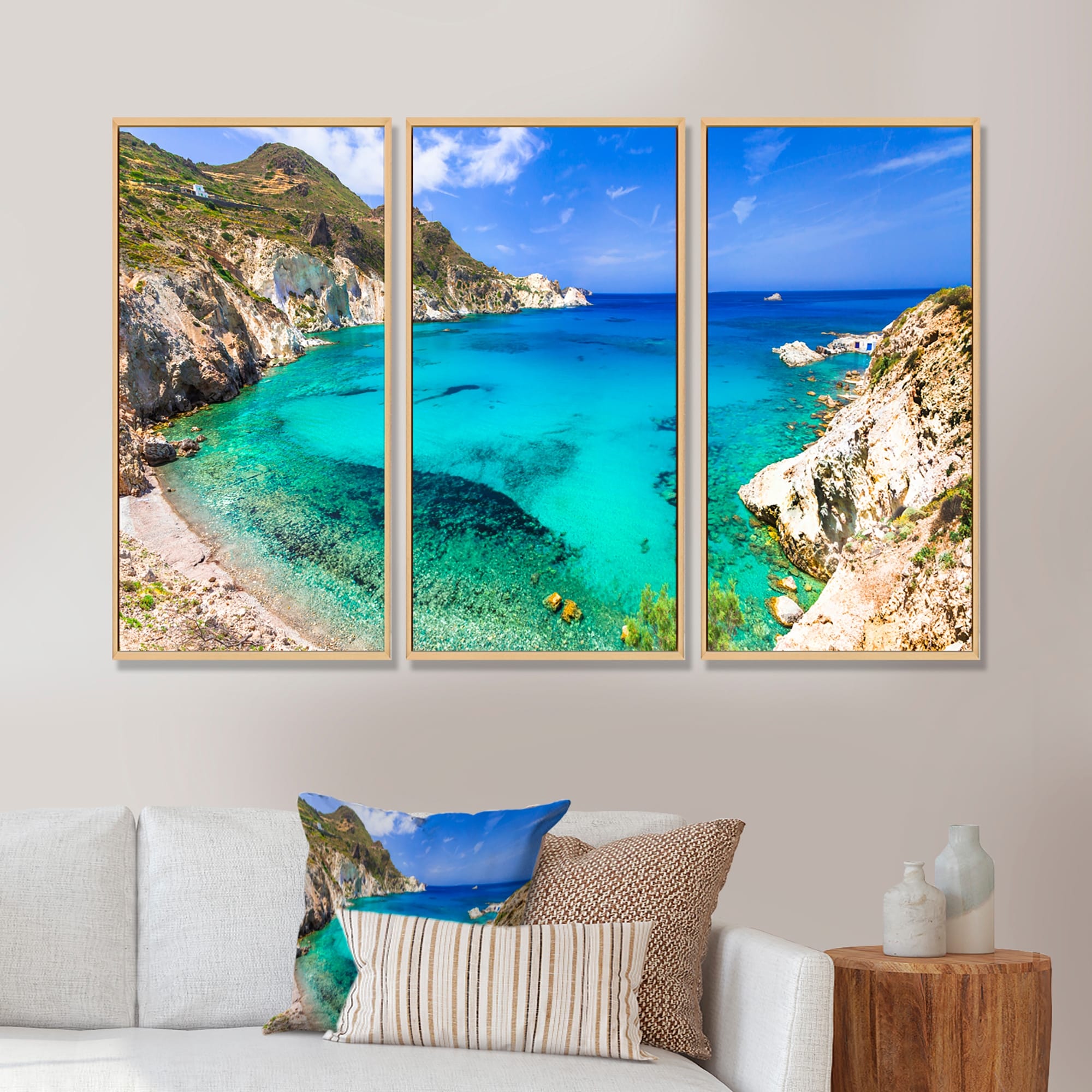 Designart "Greece Beaches of Milos Island" Landscape Framed Canvas Wall Art Print Set of 3 - 4 Colors of Frames