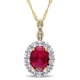 Miadora 14k Yellow Gold Oval-cut Created Ruby, White Topaz and Diamond Accent Halo Drop Necklace (G-H, I1-I2) - Red